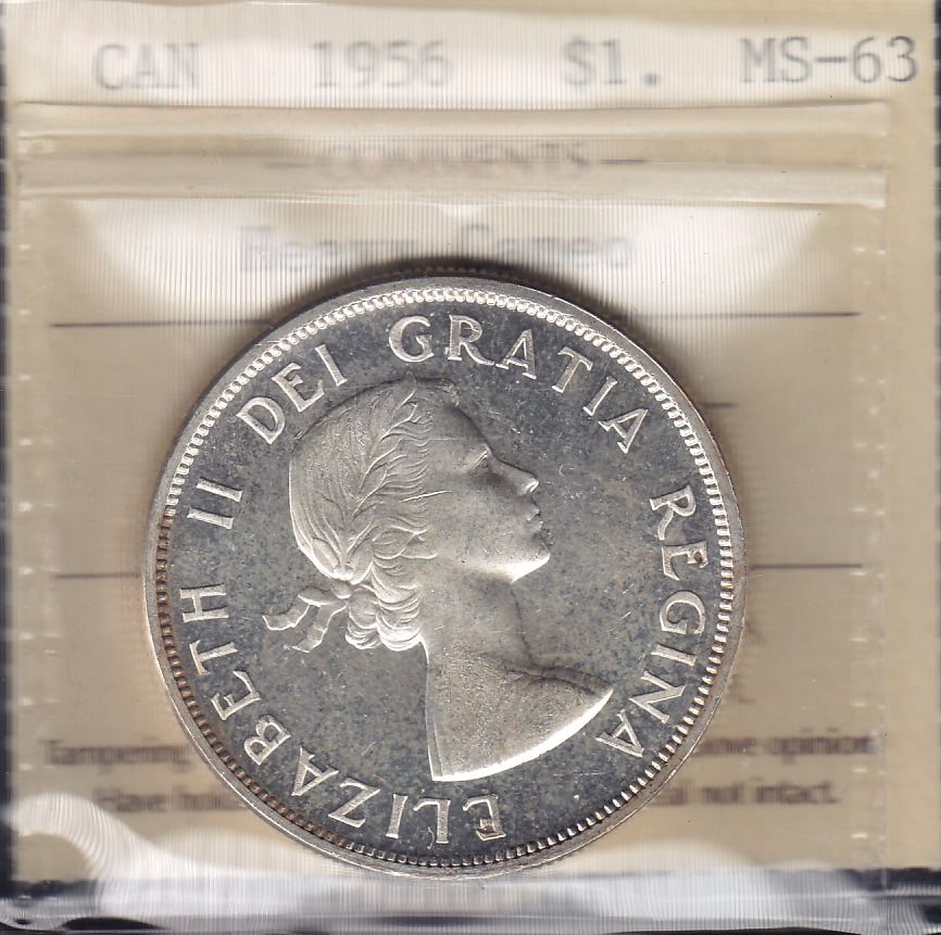 1956 Silver Dollar - ICCS MS-63, Heavy Cameo.