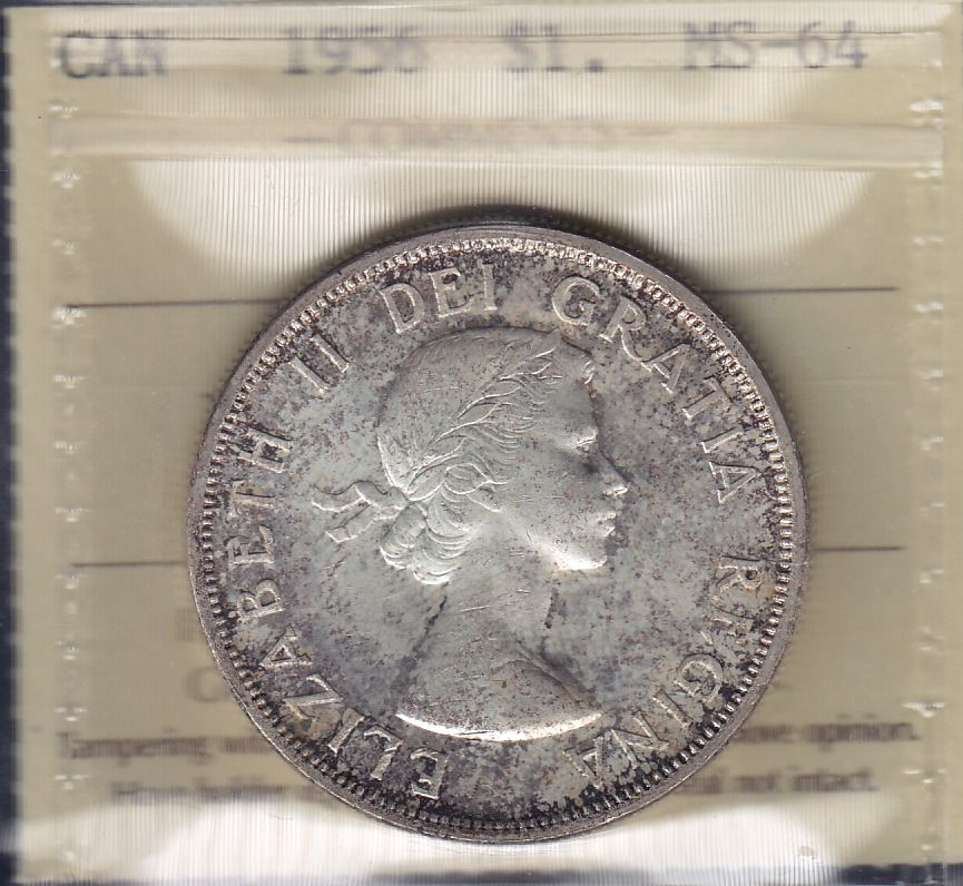 1956 Silver Dollar. ICCS MS-64, Great Lustrous finish.