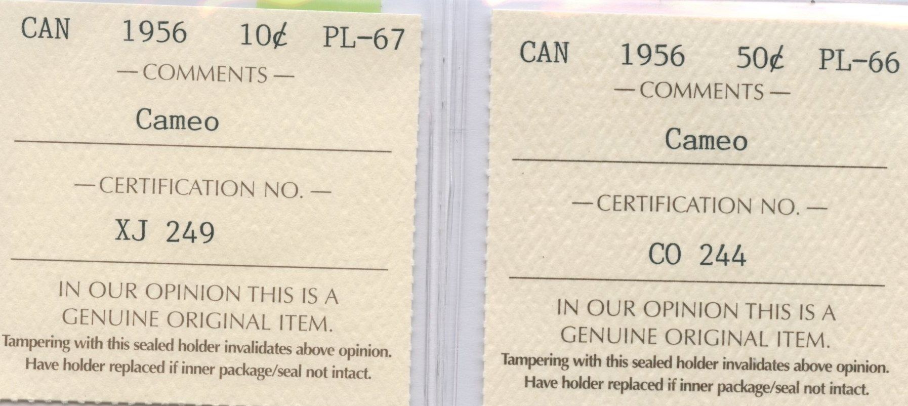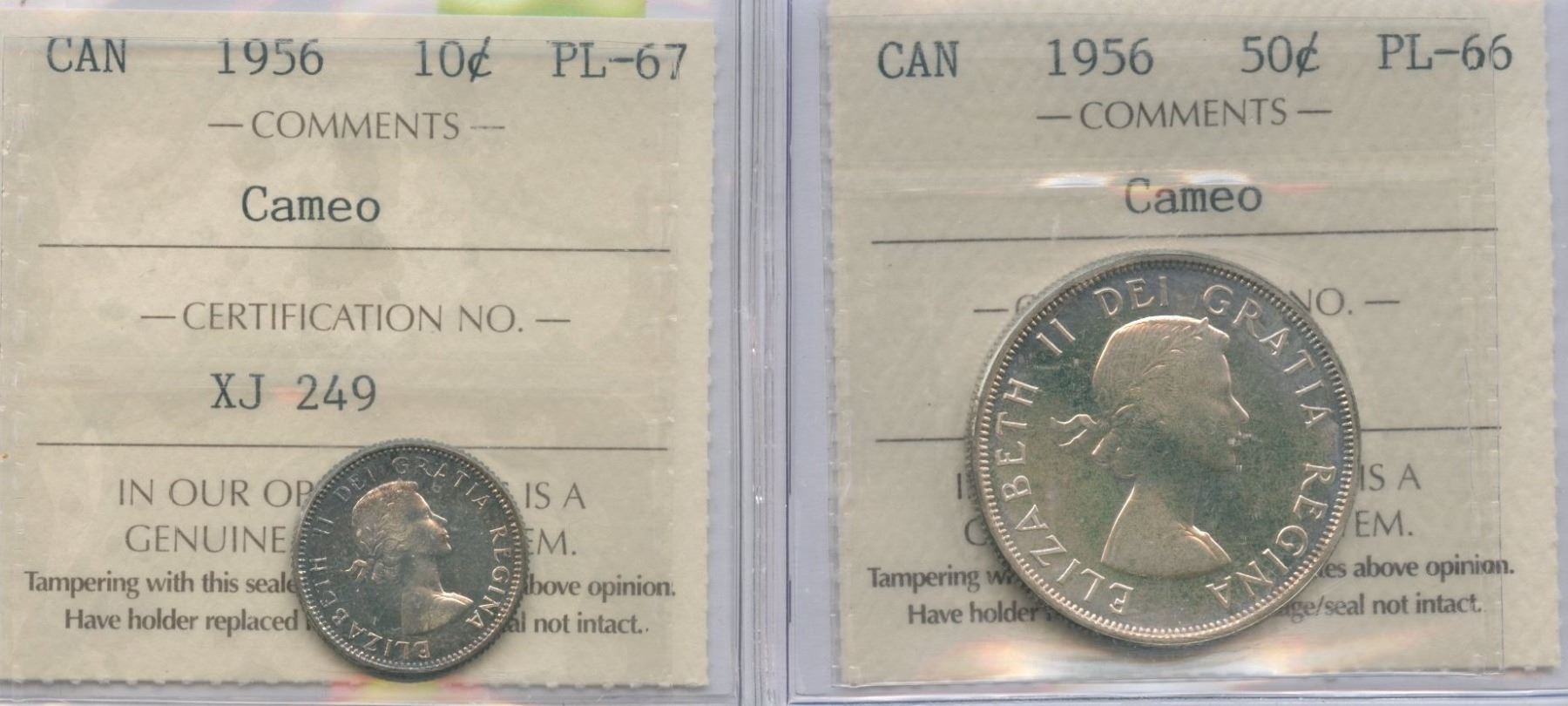 Includes: Ten Cents PL-67, Cameo & Fifty Cents PL-66, Cameo. 2 pcs.