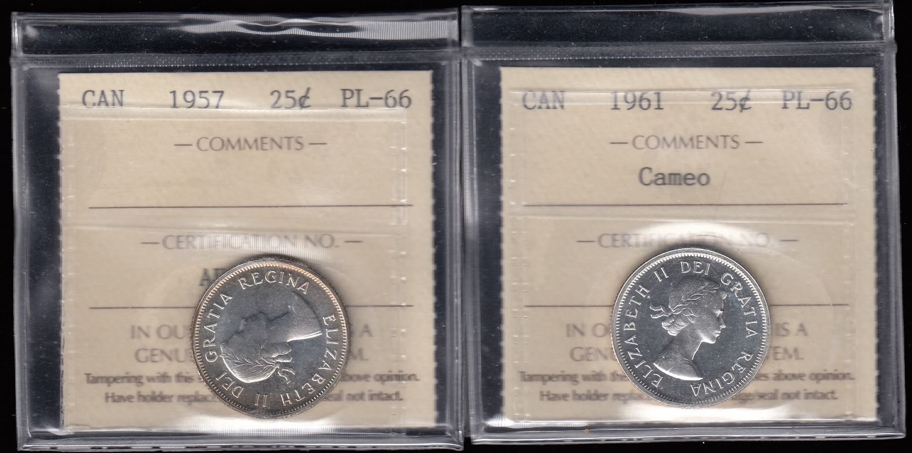 Both ICCS Graded PL-66, cameo on the '61.