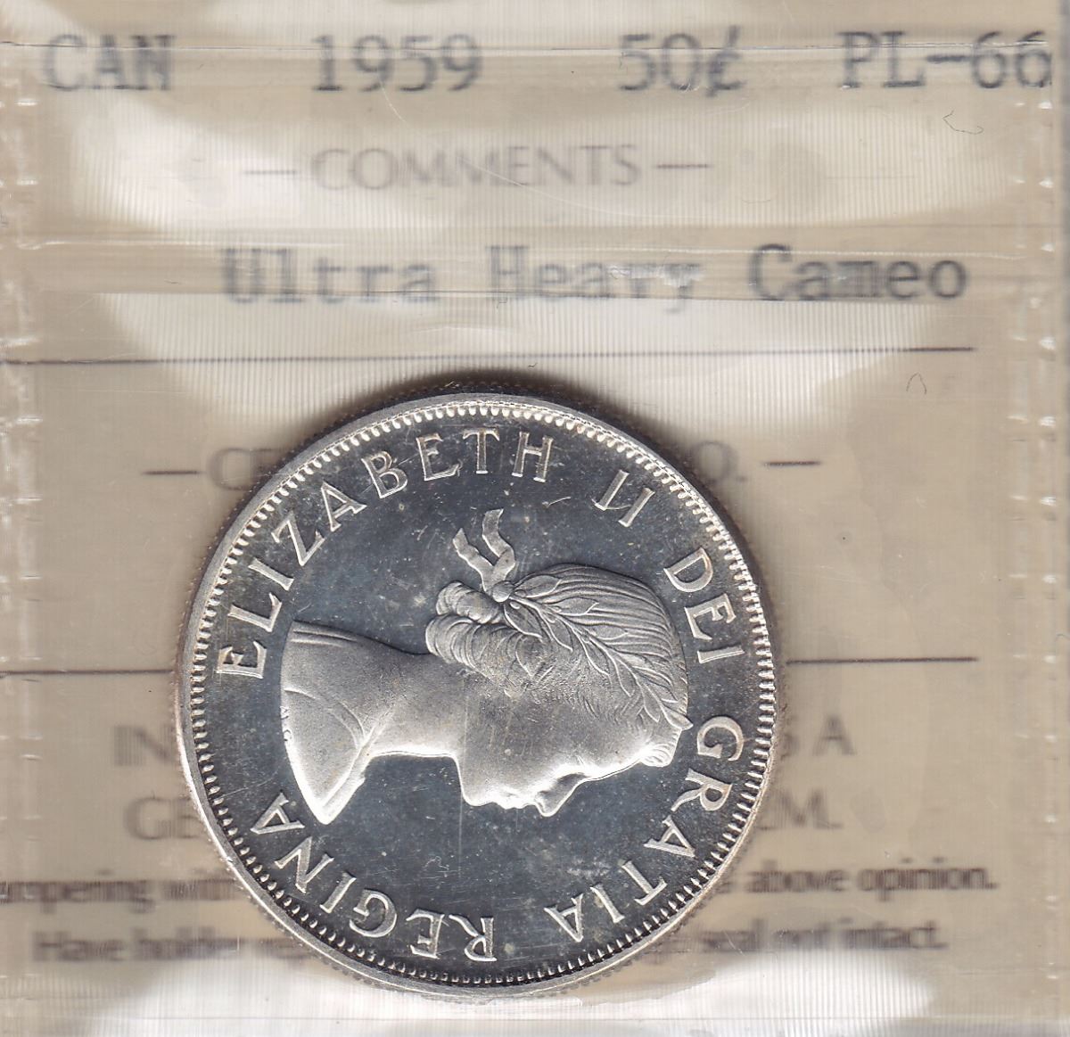 1959 Fifty Cents - ICCS PL-66 Ultra Heavy Cameo, essentially a flawless coin.
