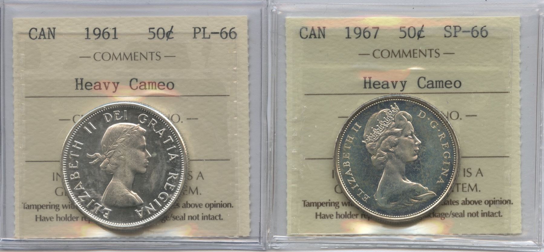 Includes: 1961 PL-66 & 1967 SP-66, both heavy cameo. 2 pcs.