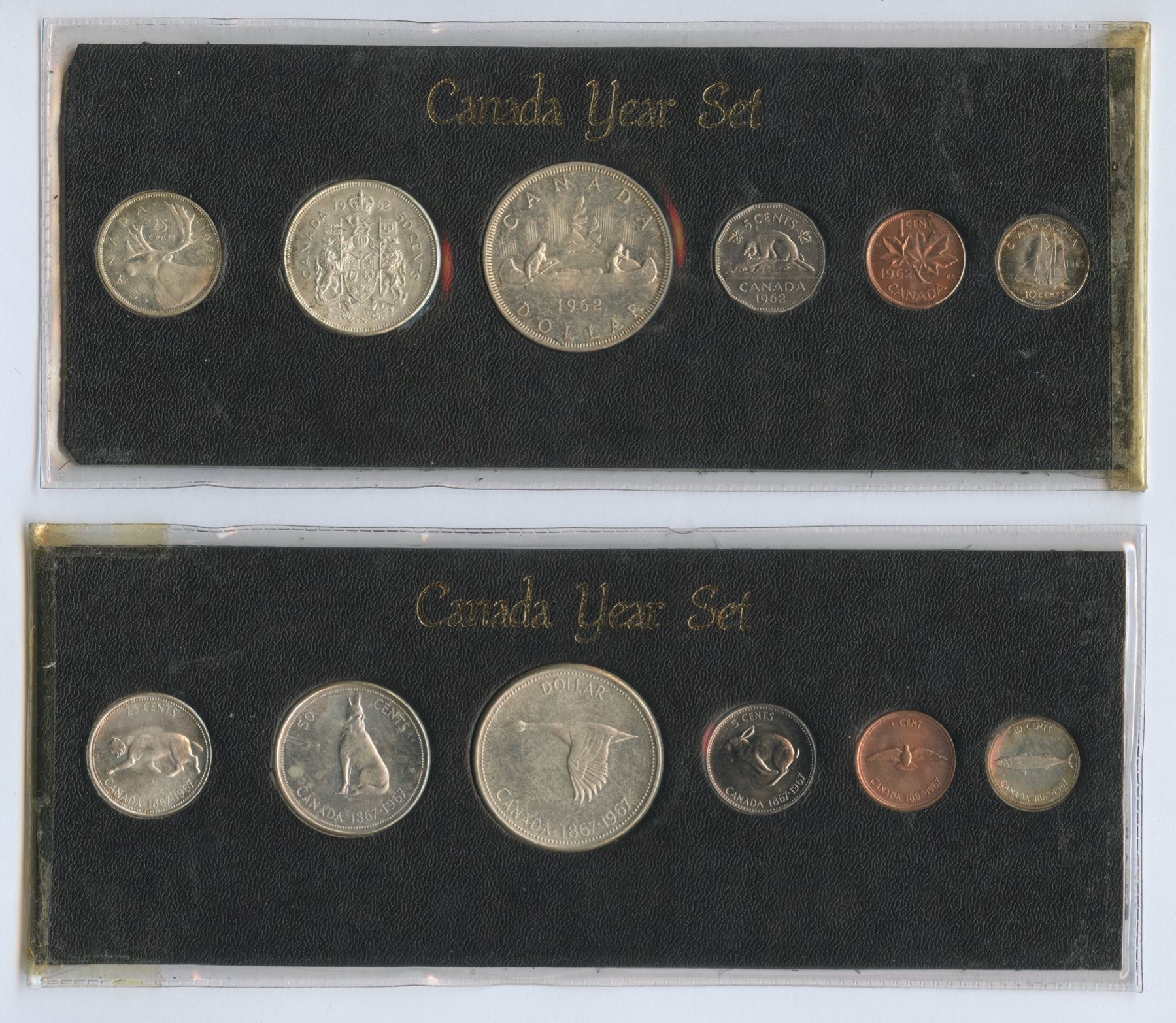 Royal Canadian Mint Silver year sets for 1962 & 1967 in display cards