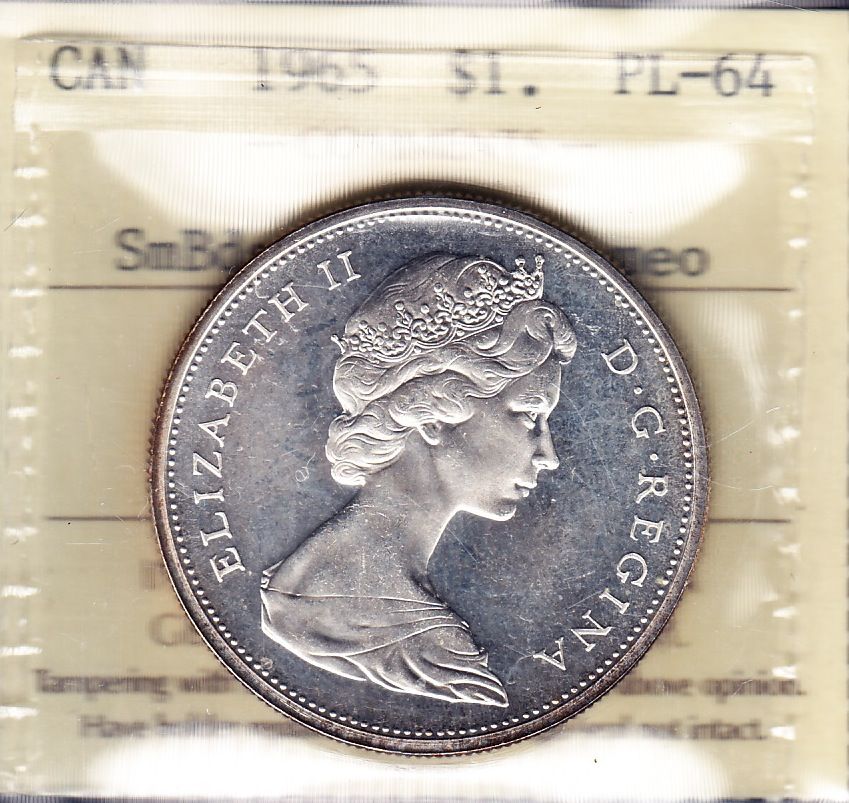 1965 Silver Dollar - Small Beads, Pointed 5, ICCS MS-64.