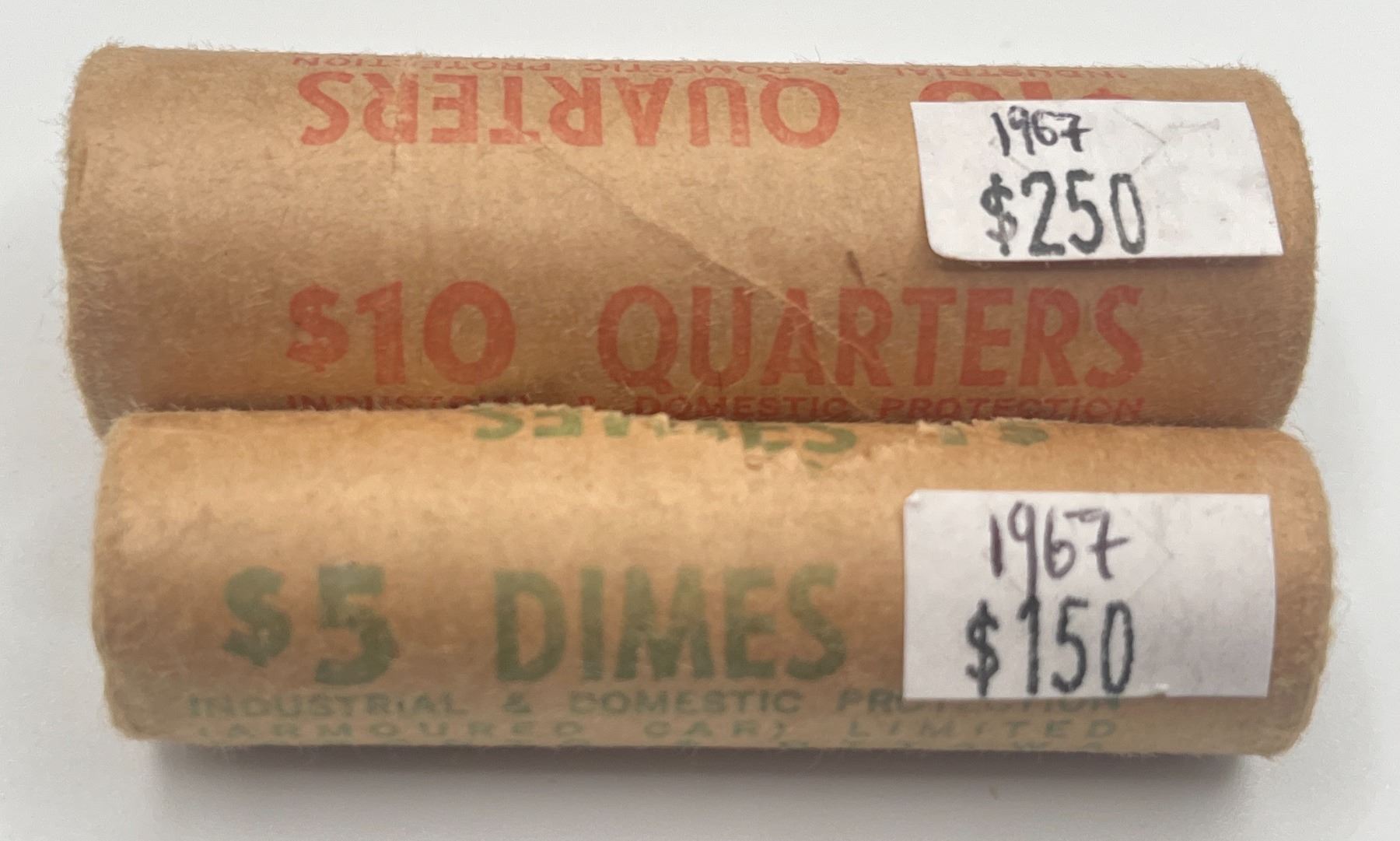 1967 BU Silver Canada 10 & 25 Cents Silver Rolls