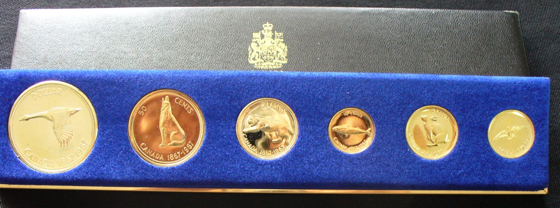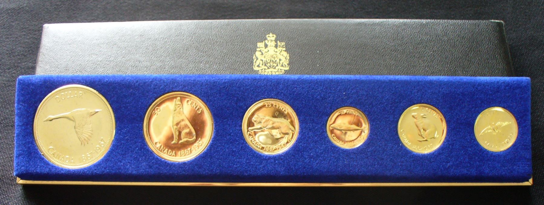 1967 Royal Canadian Mint Gold Plated Mint Set, in display box with gold embossing.