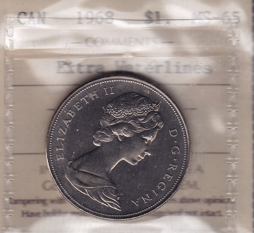 1968 One Dollar - ICCS MS-65, Extra Water lines.