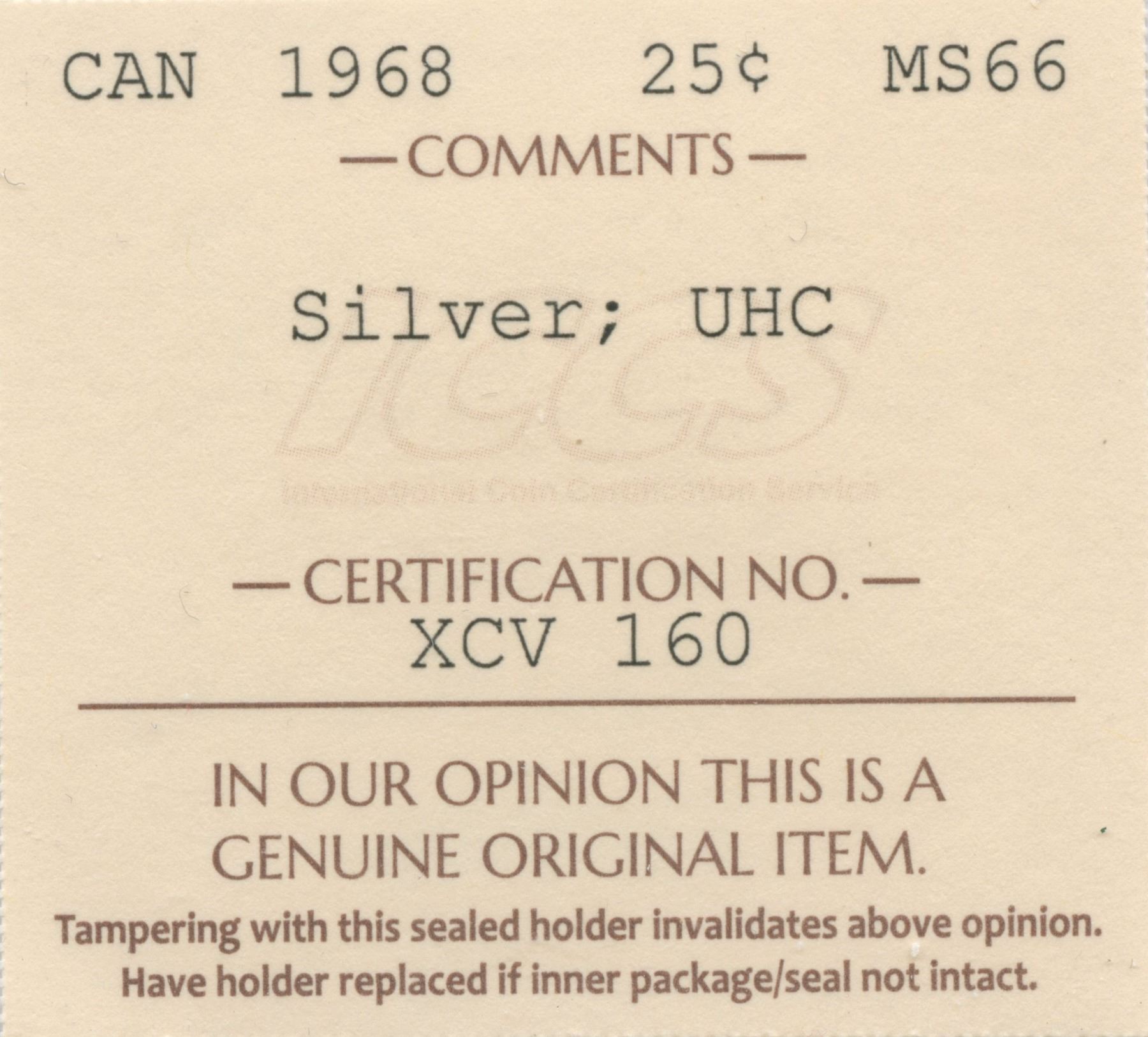 ICCS MS66. Silver; Ultra Heavy Cameo.