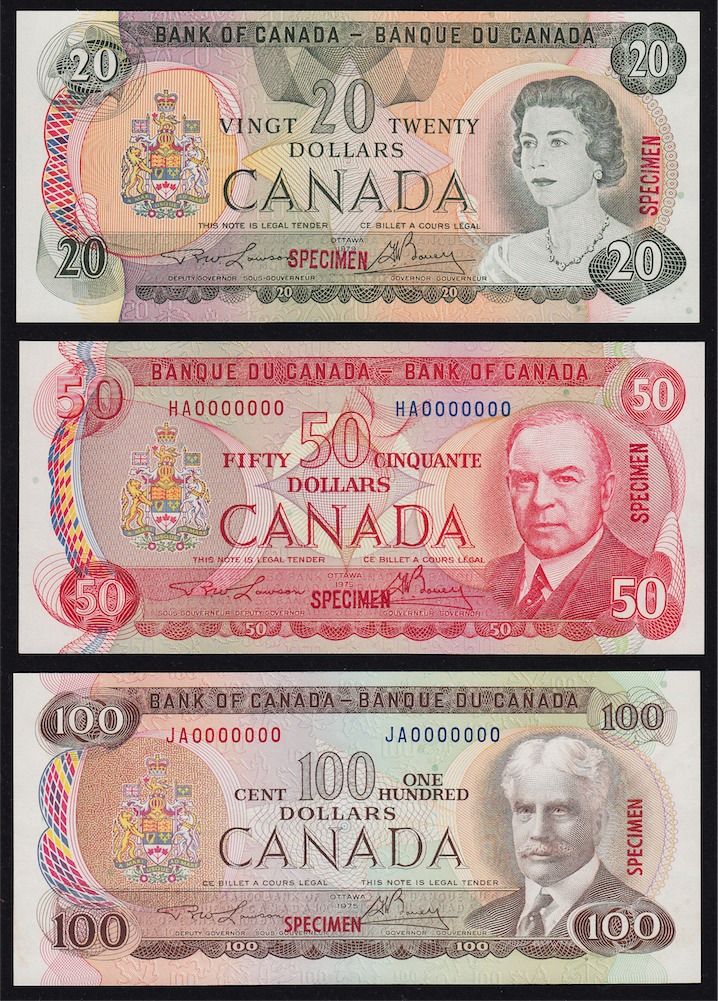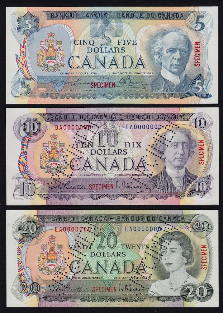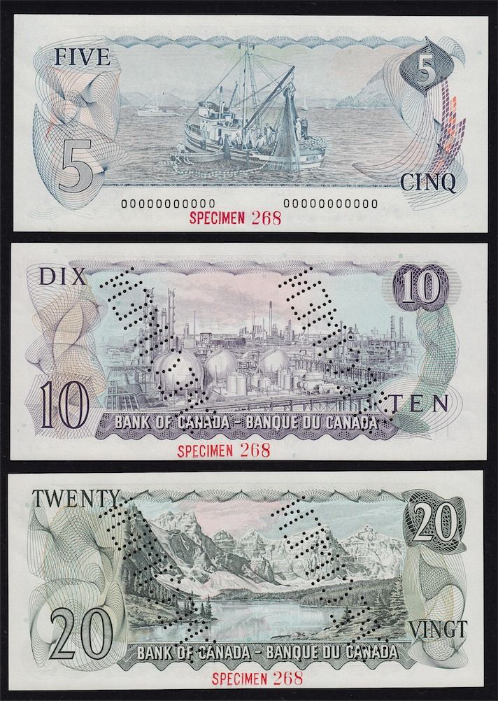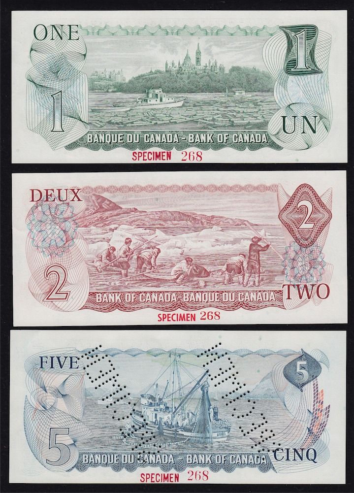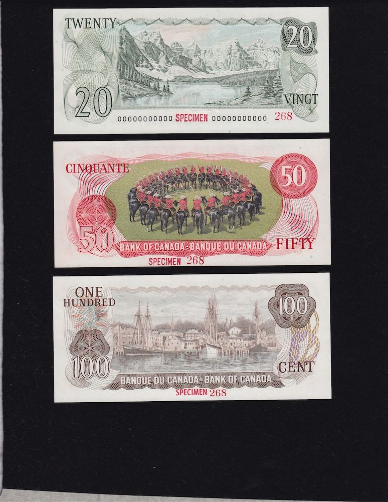 1969-1979 Multicolour Bank of Canada Specimen Note Set - Choice Uncirculated Set number 268 of 620. 9 Pcs.