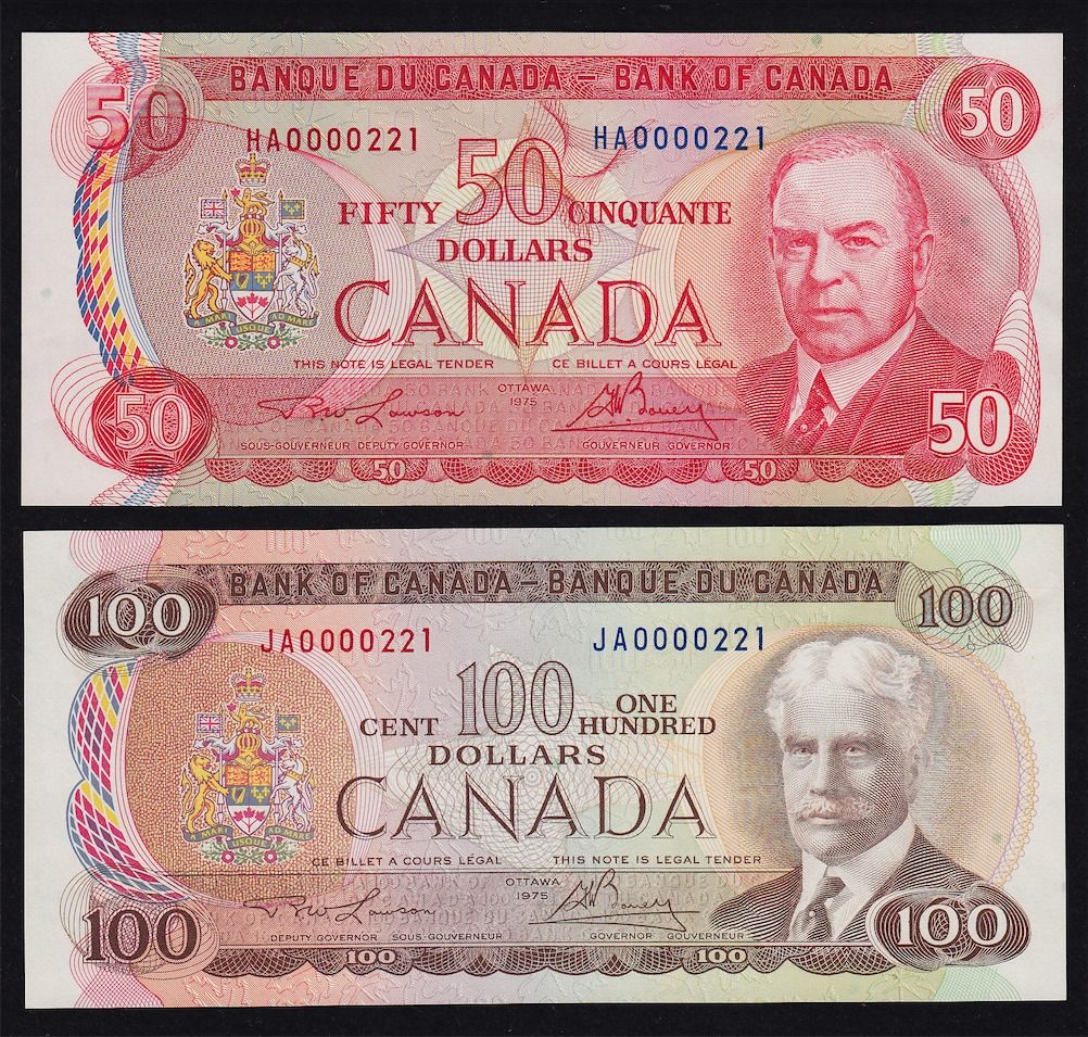 1969-1979 Multicoloured Bank of Canada Set of Eight Matching Serial Numbered Notes - S/N:221, all choice uncirculated.