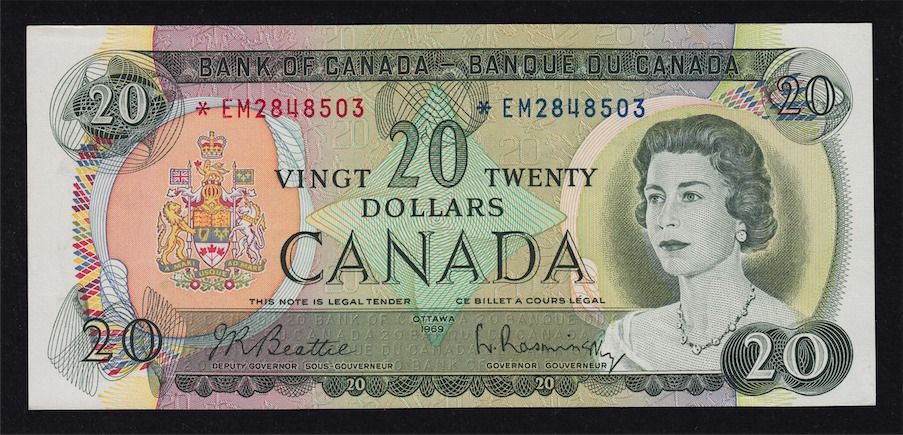 1969 Bank of Canada $20 Replacement Note - CH BC-50aA, UNC, S/N:*EM2848503.