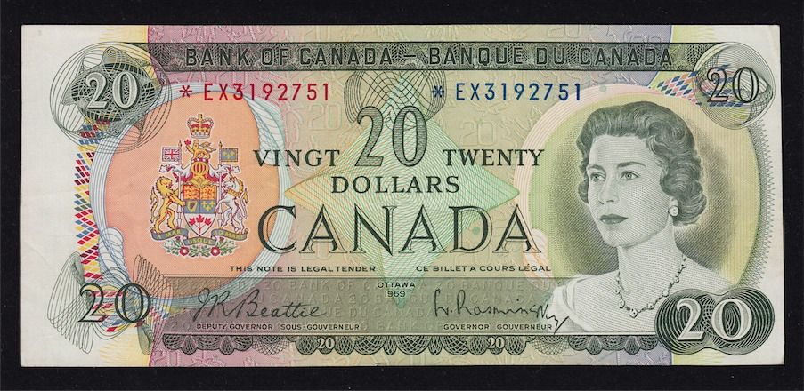 1969 Bank of Canada $20. BC-50aA, VF, S/N:*EX3192751.