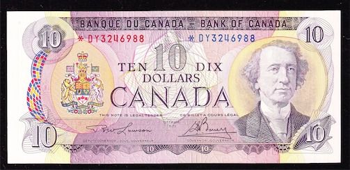 1971 Bank of Canada $10 Replacement Note - CH BC-49cA, Uncirculated, S/N:*DY3246988.