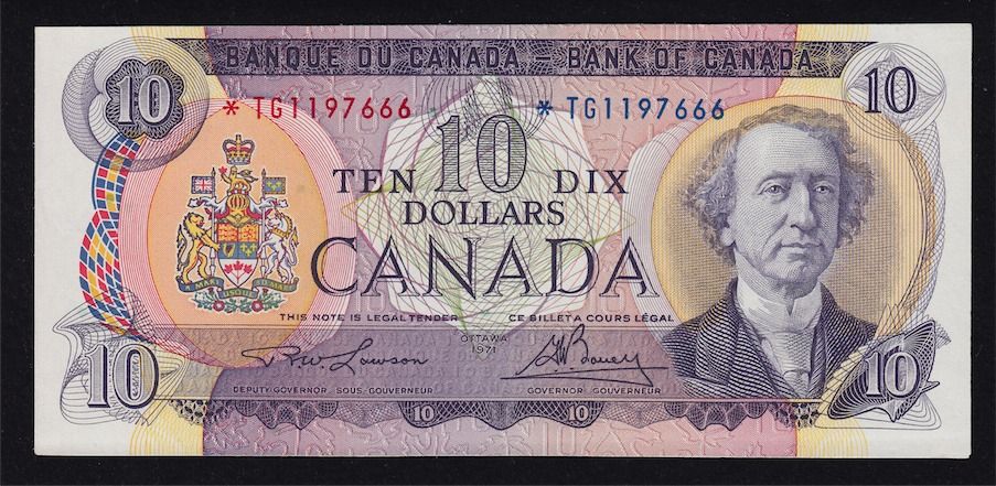 1971 Bank of Canada $10 Replacement Note - CH BC-49cA, Uncirculated, S/N:*TG1197666.