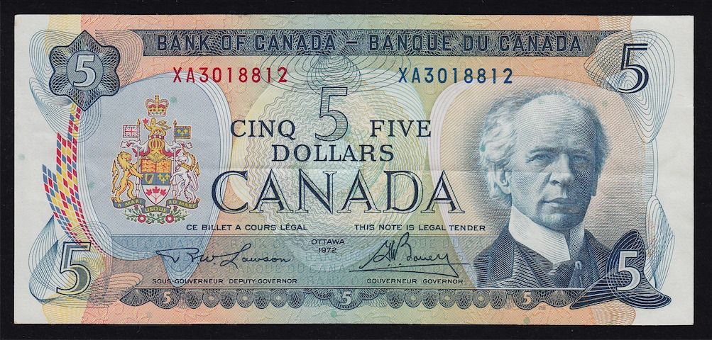 1972 Bank of Canada $5 - CH BC-48b Clean EF. S/N:XA3018812.