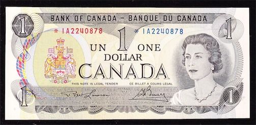 1973 Bank of Canada $1 Replacement Note - CH BC-46aA, Uncirculated, S/N:*IA2240878.