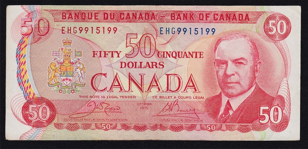 1975 Bank of Canada $50 Radar - CH BC-51b. VF/EF S/N:EHG9915199.