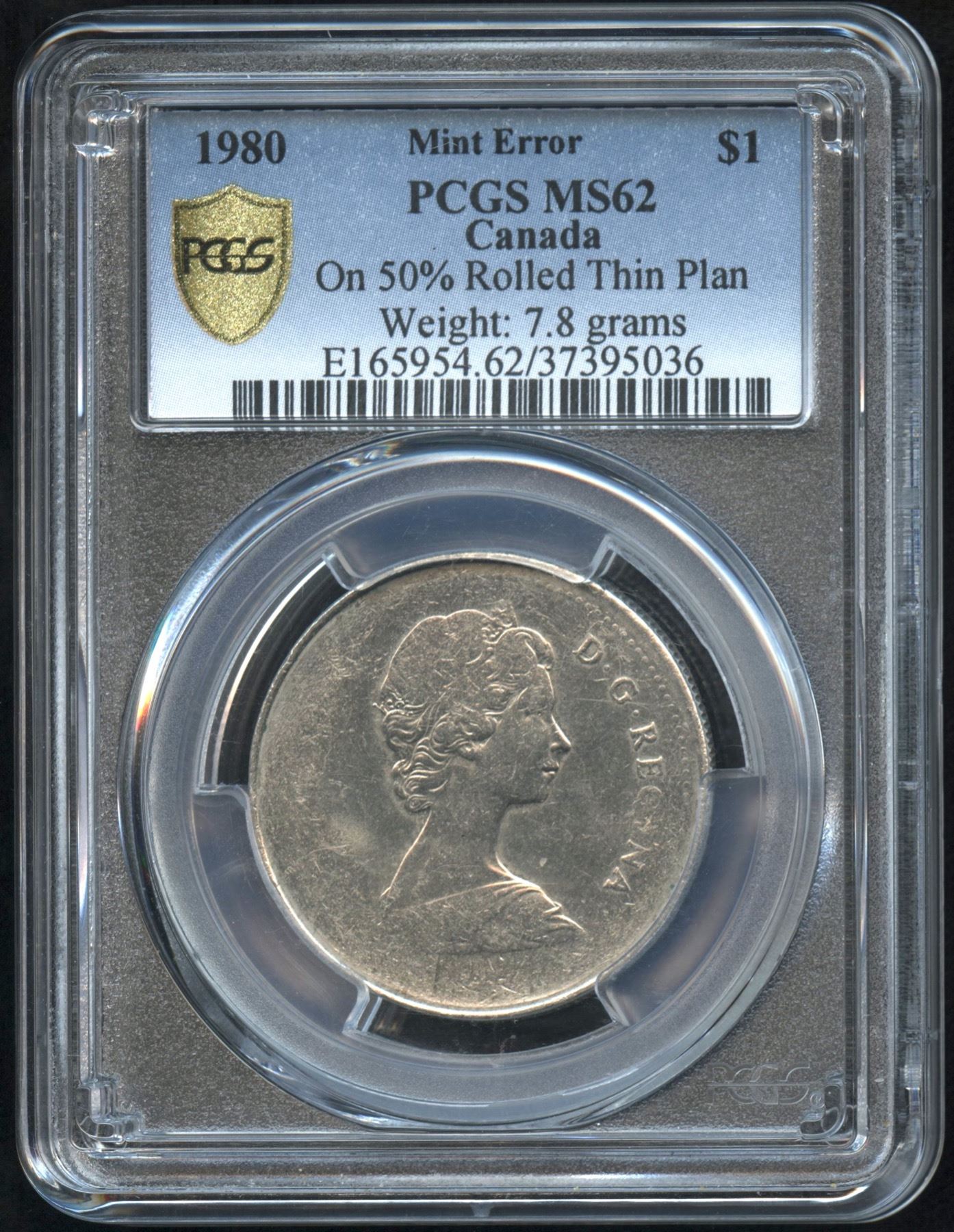 PCGS MS62, on 50% thin planchet, 7.8 grams. Rare with only 4 known.