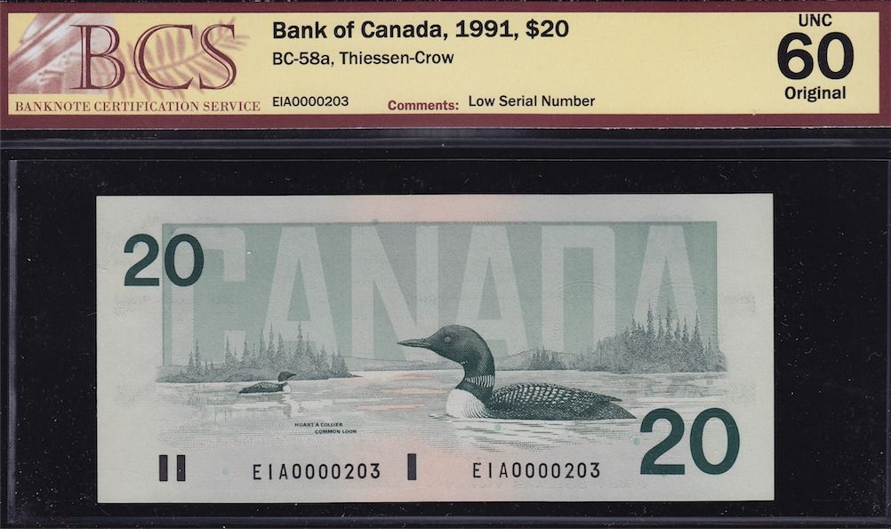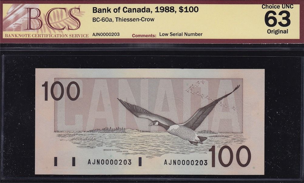 1986 - 1991 Bank of Canada Set Birds of Canada $5 - $100 - BC-55a - BC-61a, Matching Low Serial Numbered Set #203. All BCS UNC60/63, set of seven notes.