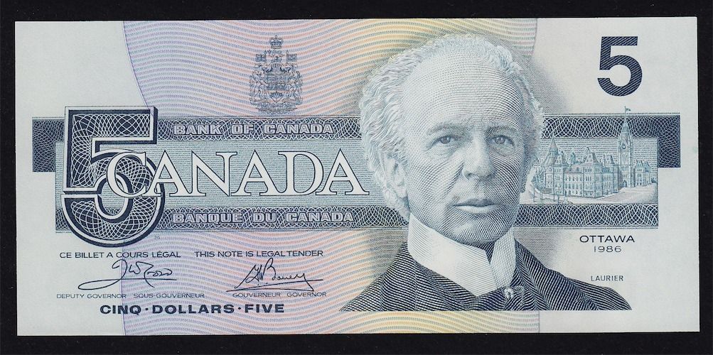 1986 Bank of Canada $5 Solid Radar - BC-56a Gem UNC S/N:ENN2222222