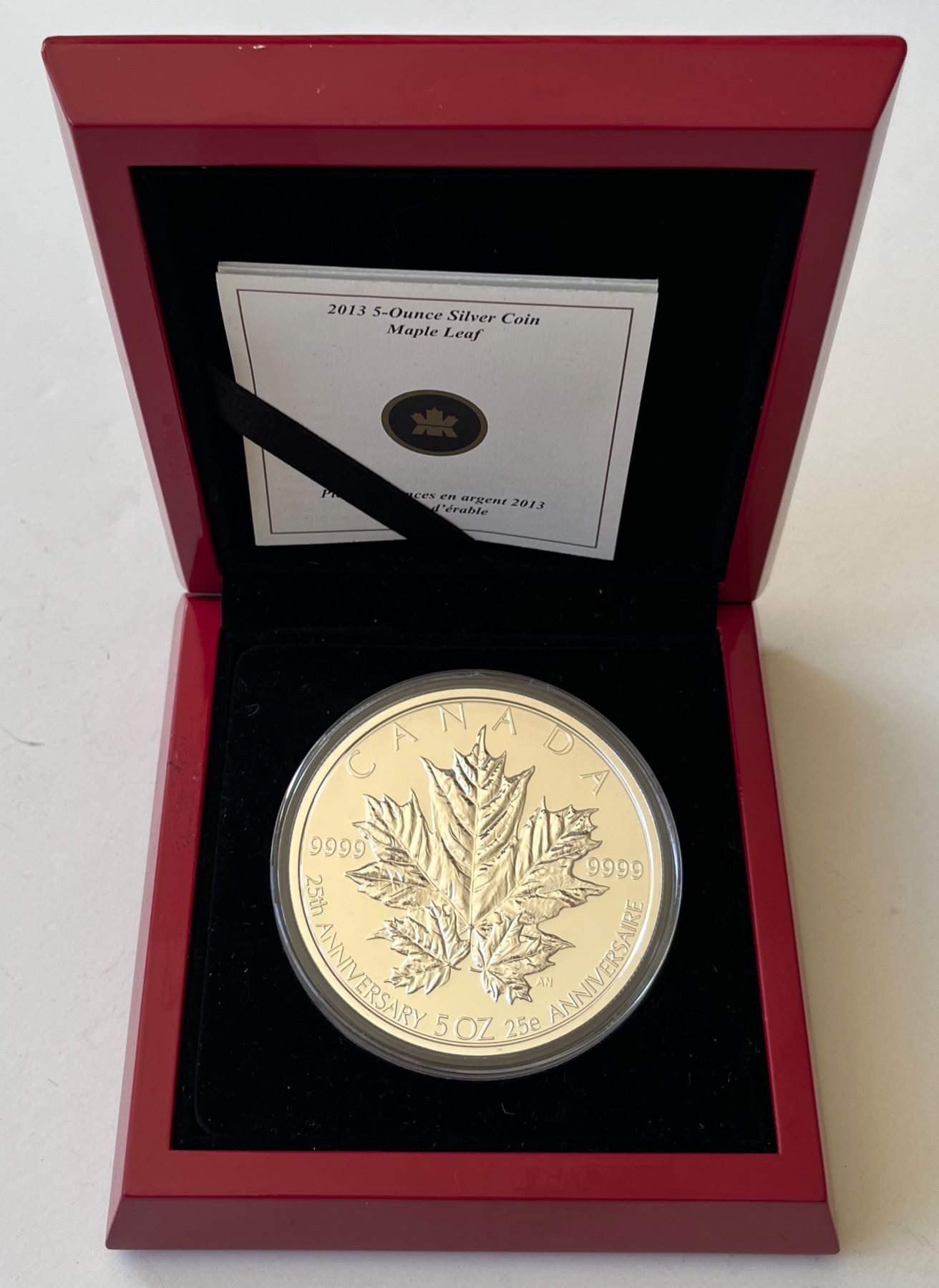 5 ounce pure silver iconic maple leaf, in case with COA #1164/2500 - no outer slipcase.