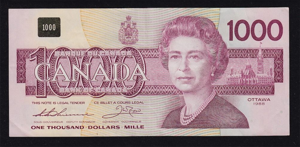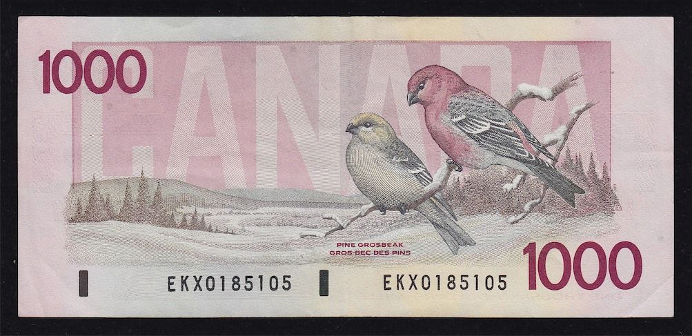 1988 Bank of Canada $1000 Replacement - BC-61aA EF. S/N:EKX0185105.