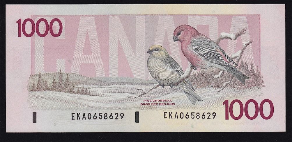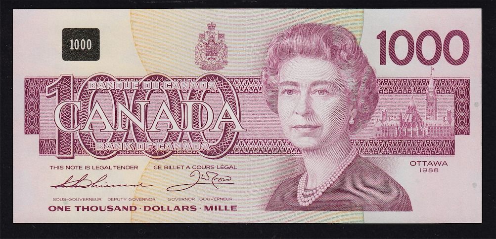1988 Bank of Canada $1000 - BC-61a, AU/UNC, S/N:EKA0658629.