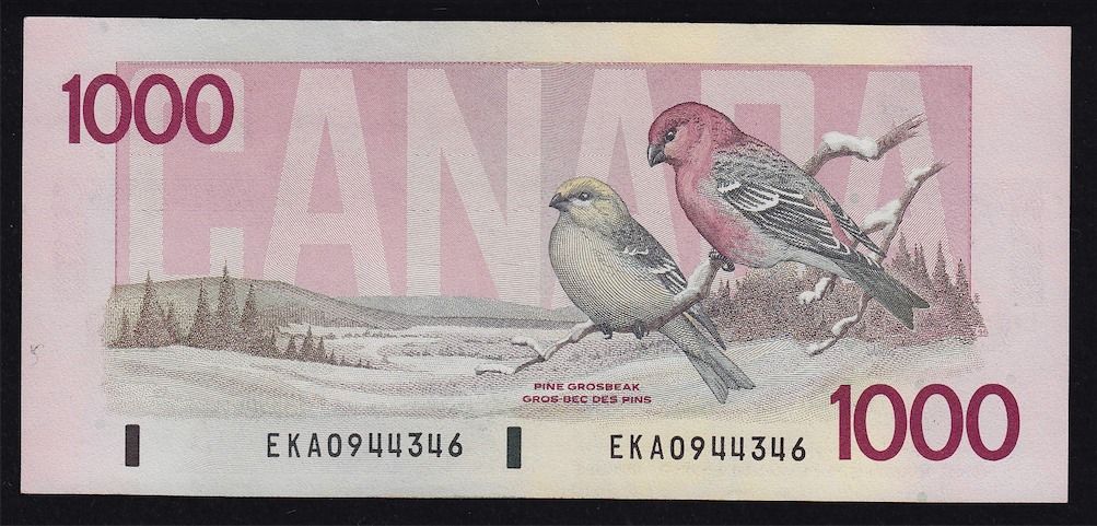 1988 Bank of Canada $1000 - BC-61a, AU/UNC, S/N:EKA0944346.