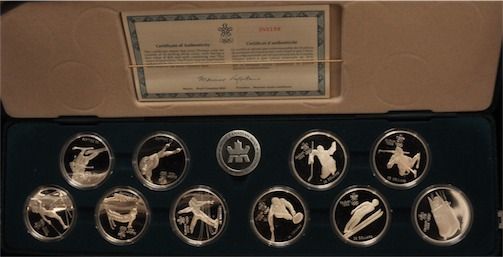 1988 Calgary Olympic $20 Proof Silver Set - Set of 10 $20 Coins, Mint in box with COA, as issued by the RCM in green case.