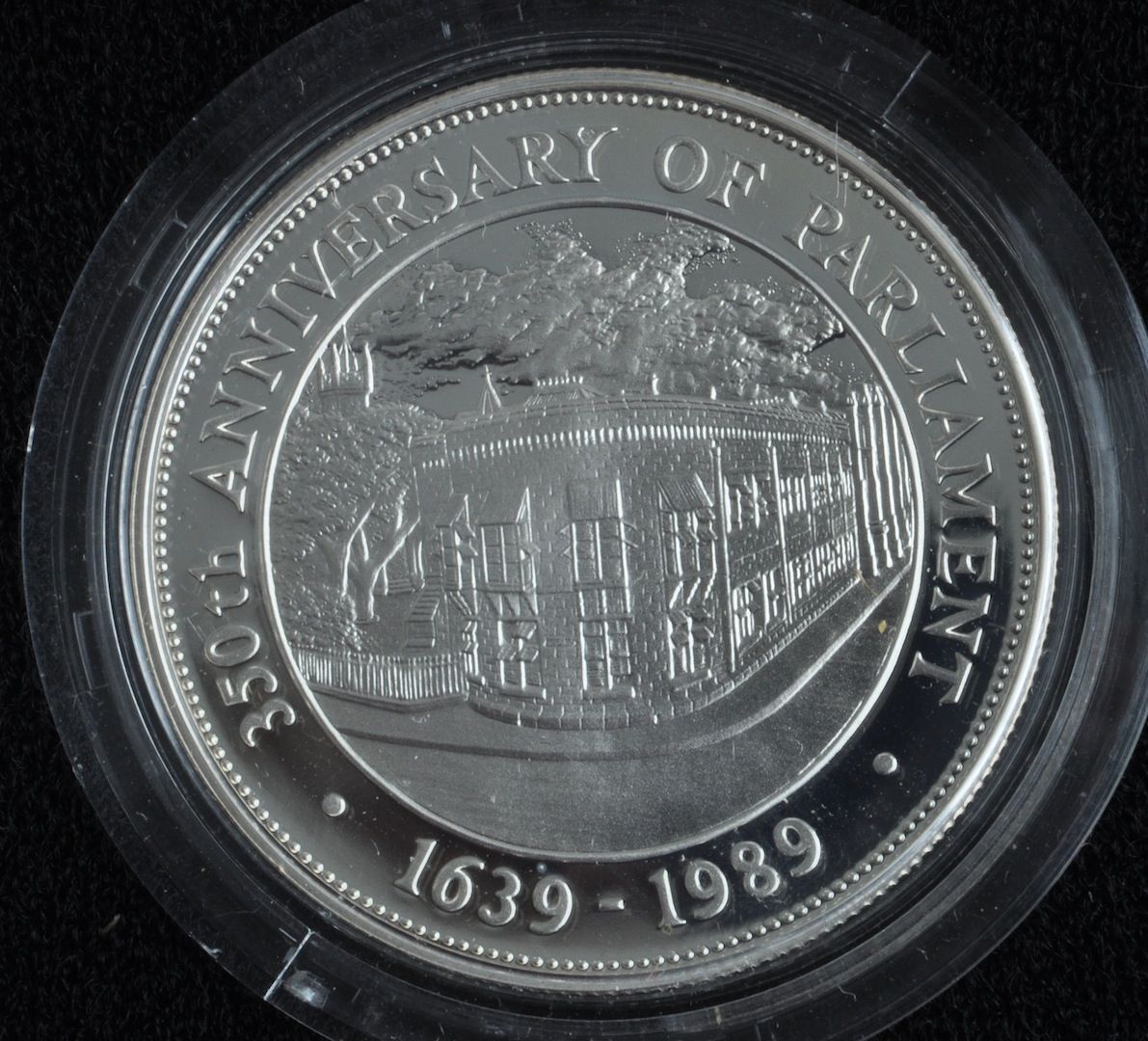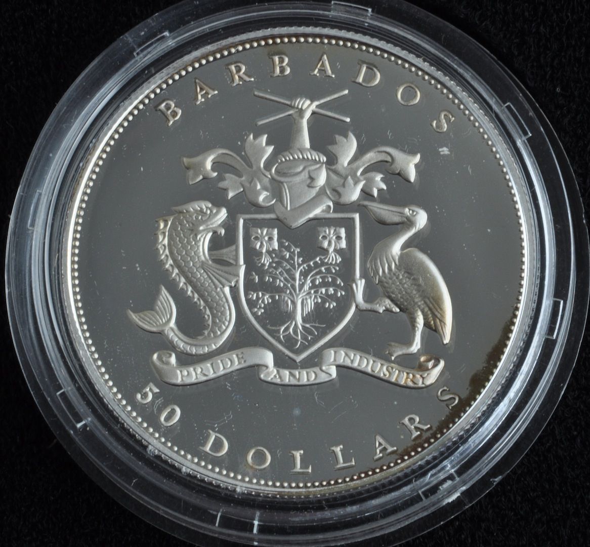 1989 Barbados $50 Silver Proof Coin - 350th Anniversary of Parliament, struck in Sterling Silver, in case of issue with COA. One Oz ASW.