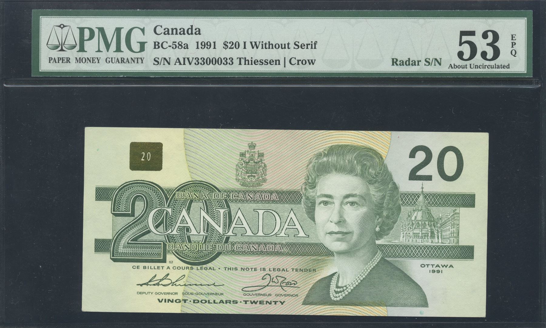1991 Bank of Canada $20 - Radar Serial Number