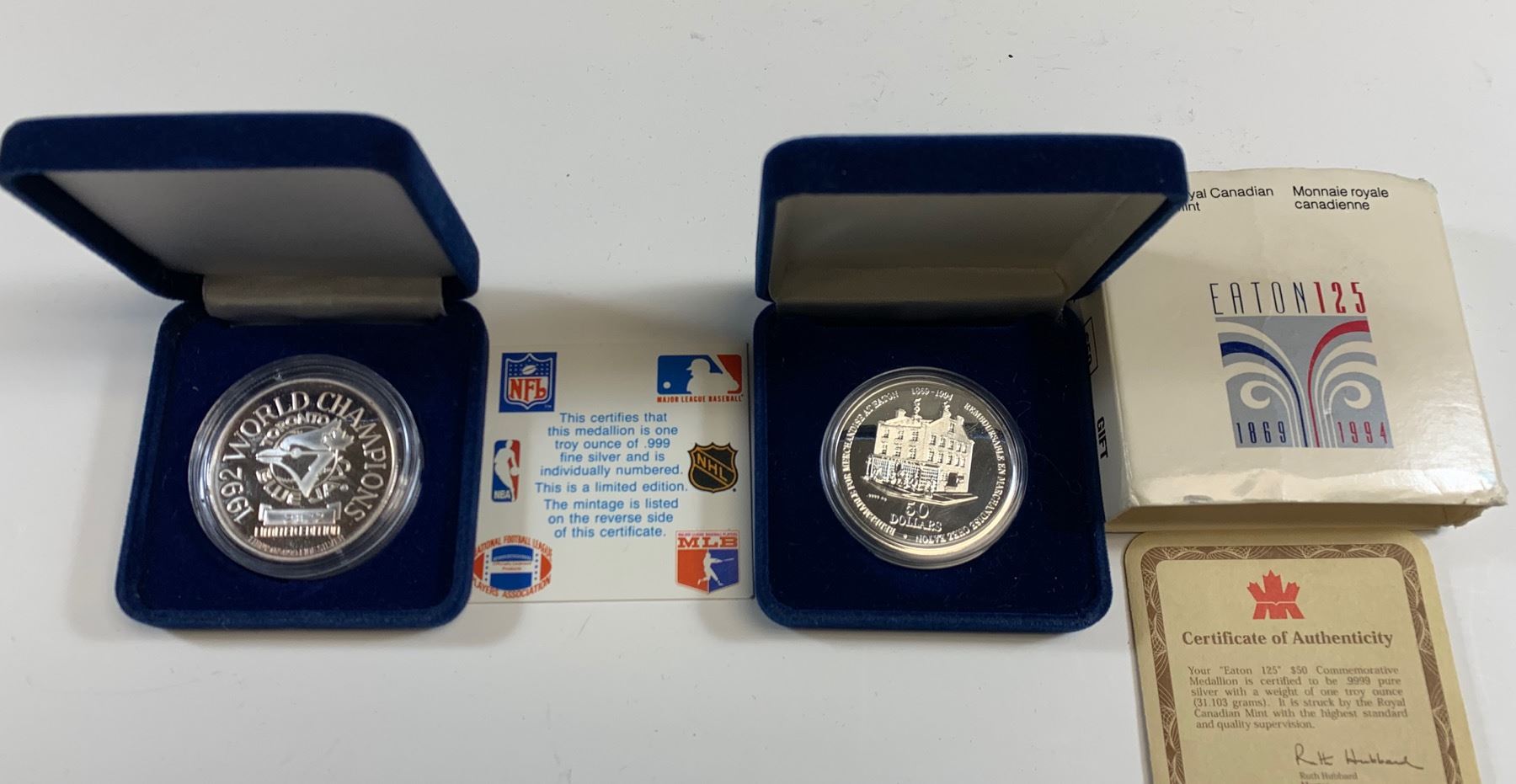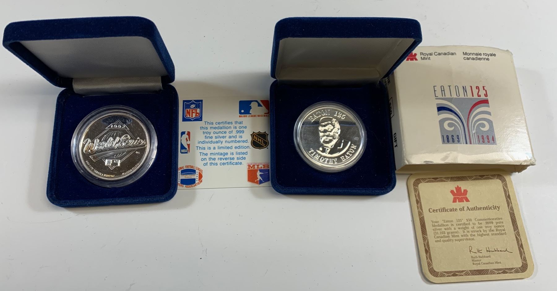 1994 Eatons silver $50 trade token, 1 oz .999 silver, struck by the Royal Canadian Mint, in original case and box of issue