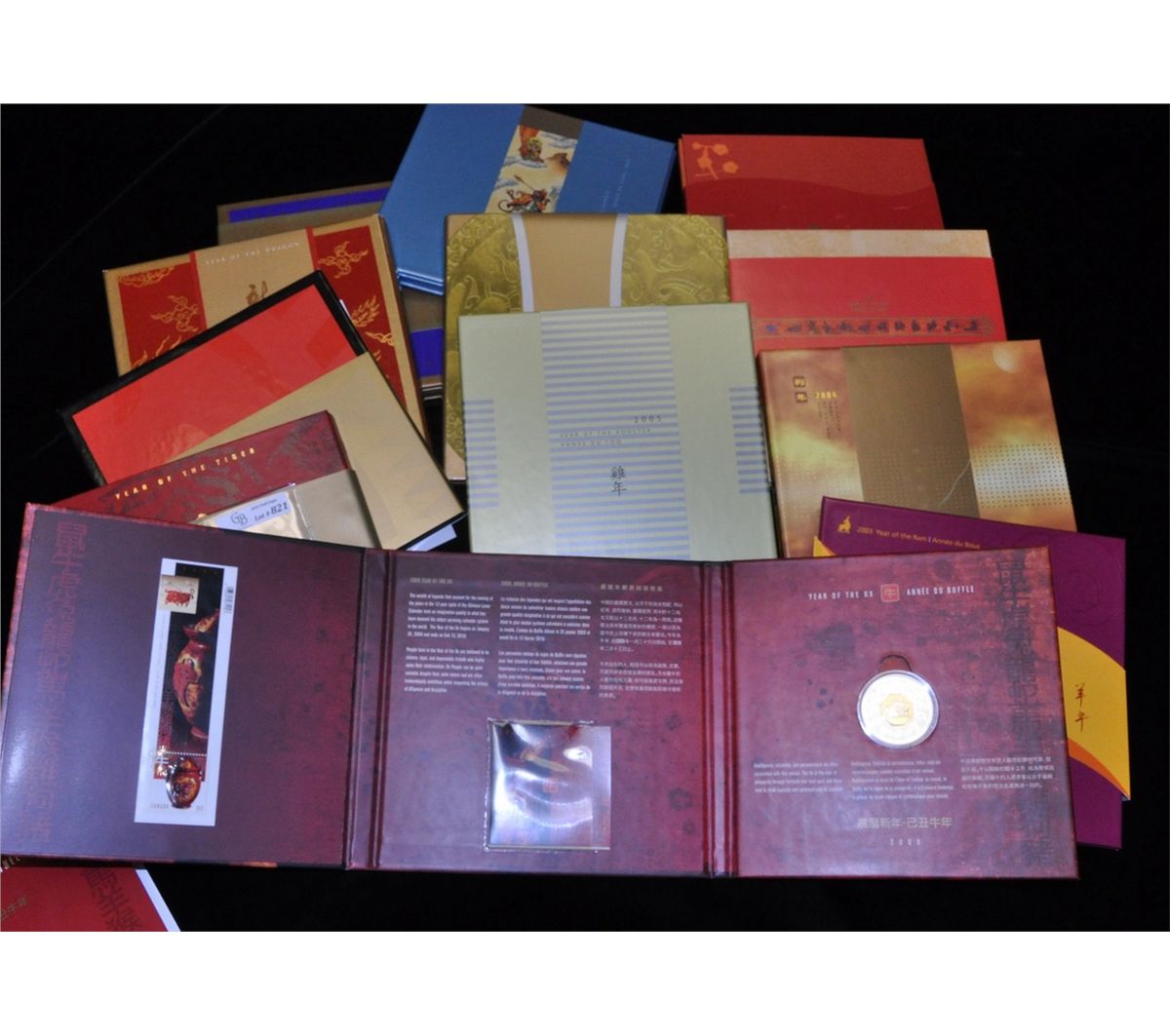 1998-2009 Canada Post Coin & Stamp $15 Lunar Set. This is the complete coin & stamp collection, in folders, issued by Canada Post. 12 Pcs.