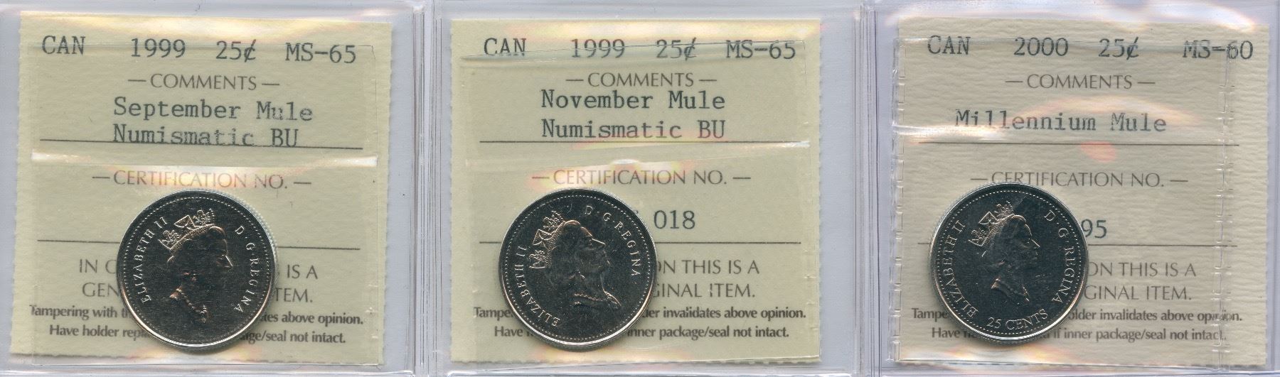 Includes: 1999 September & November MS-65's. 2000 Millennium Mule MS-60. 3 pcs.