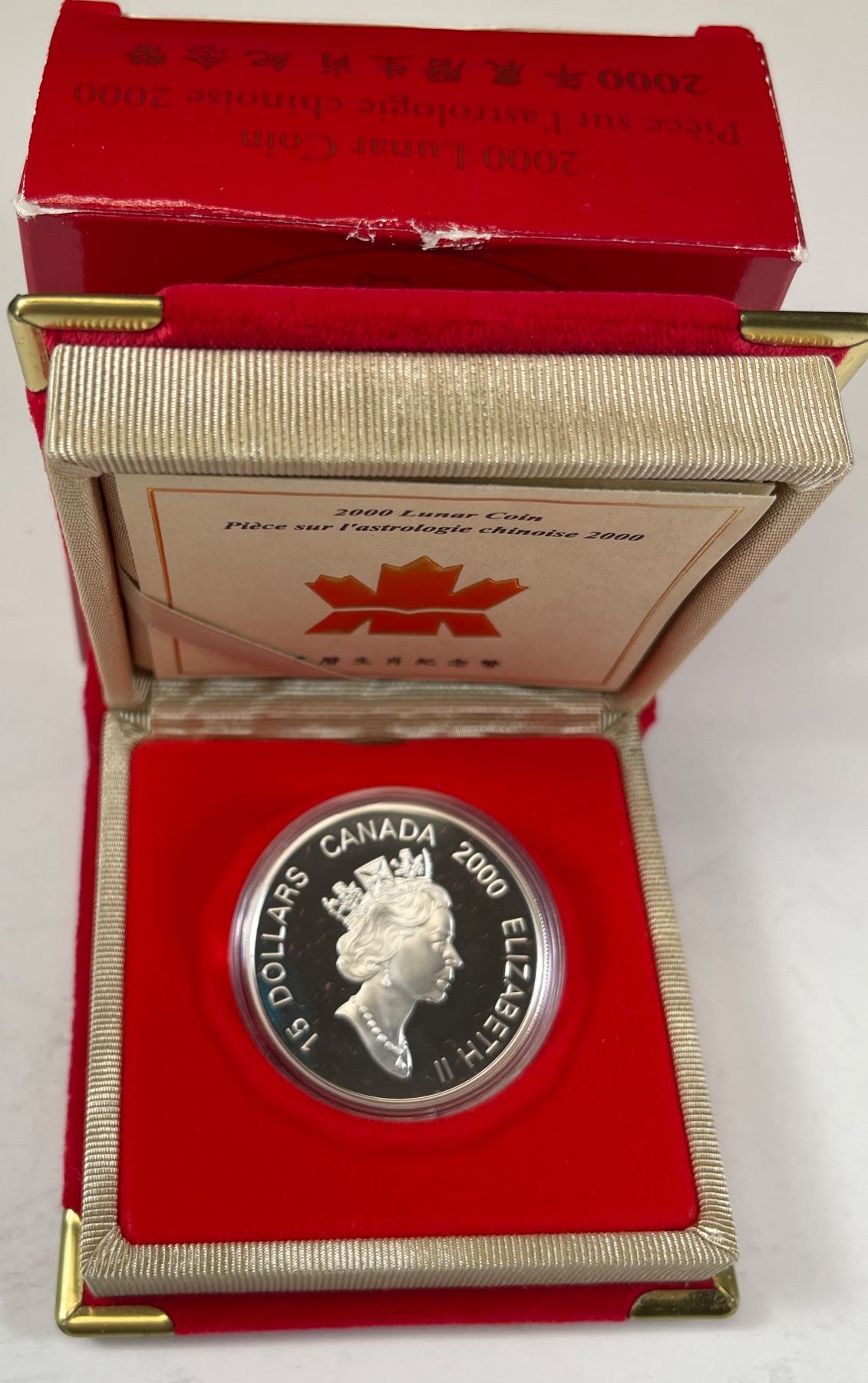 2000 Canada $15 Lunar Year of the Dragon Sterling Silver & Gold Plated Cameo - 34.00 g - Mintage 88,634 With Box, sleeve and COA