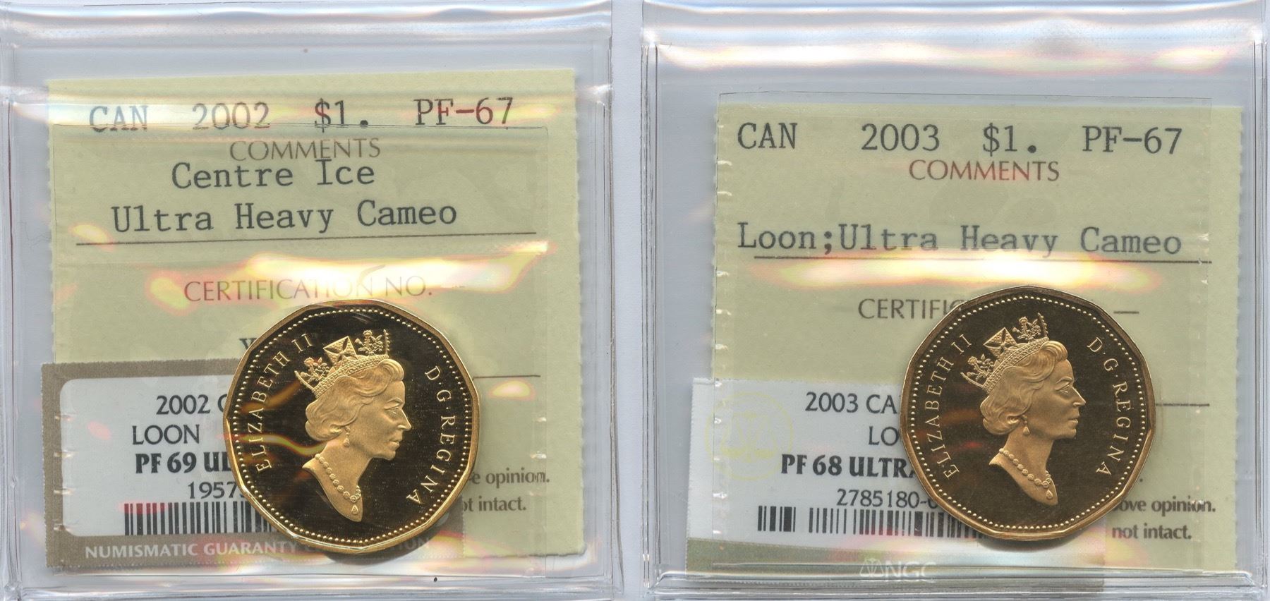 2002 Gold Plated Centre Ice Loon & 2003 Proof Loons
