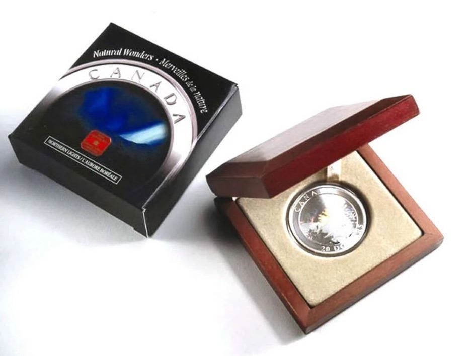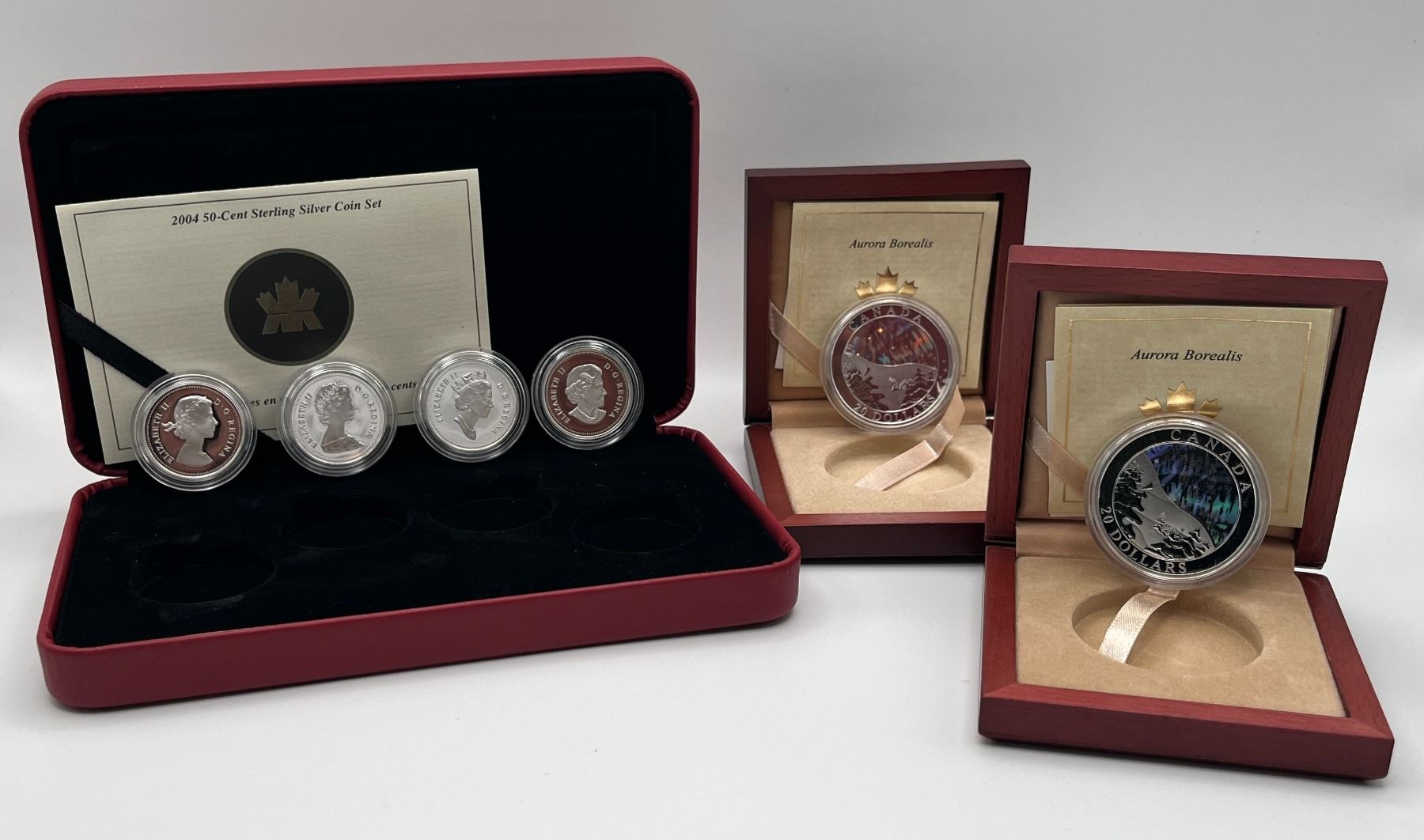 Two Northern Lights $20 Fine Silver coins & 4 coin effigy set.