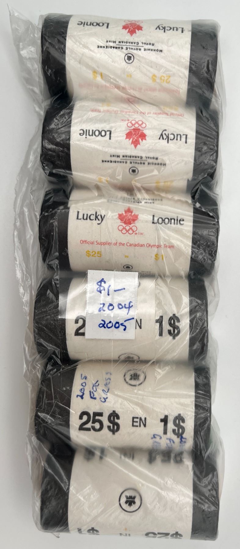 Includes: 3 x 2004 Olympic Flame; 2005 Loon; 2 x 2005 Terry Fox. 6 original sealed rolls.