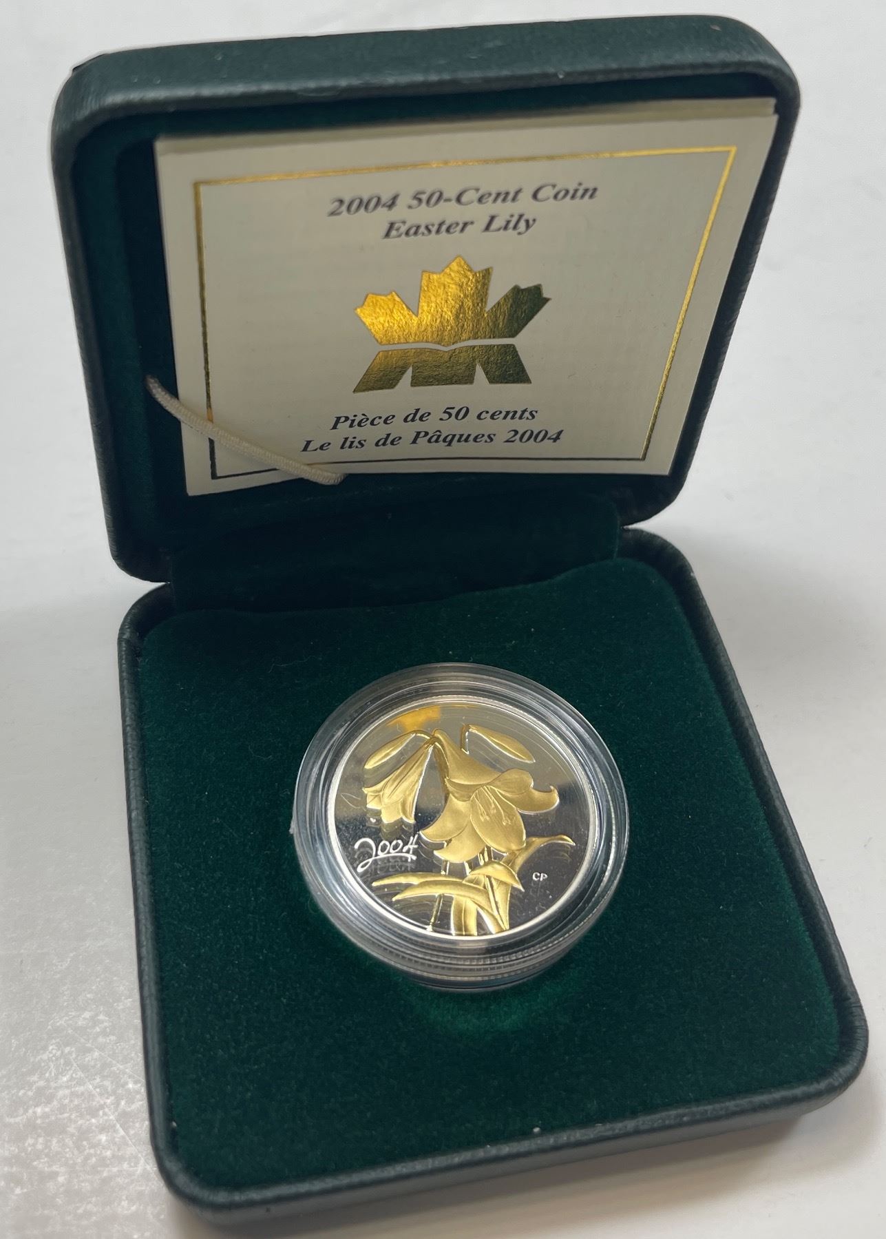 2004 50-cent Canadian Floral - Golden Easter Lily (#3) Sterling Silver - 9.3 g - With Box, and COA