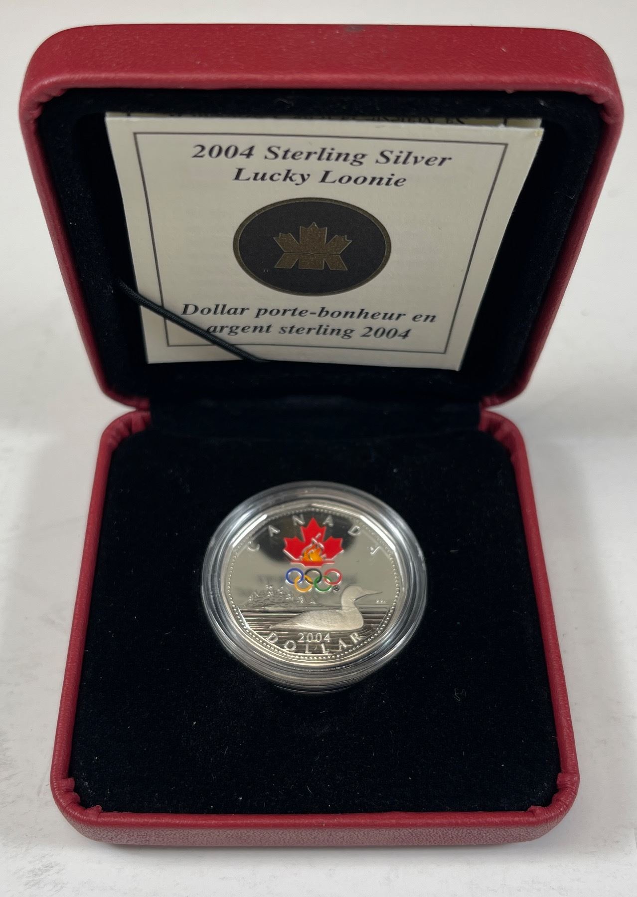 2004 Canada Proof Sterling Silver Coloured Lucky Loon Dollar - 7.0 g - Mintage 20,000 With Box, and COA
