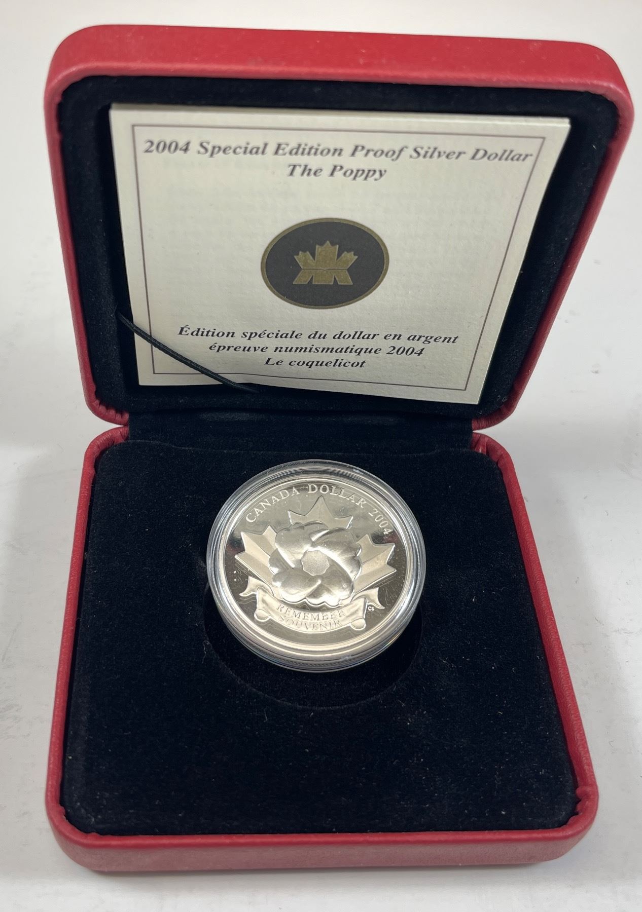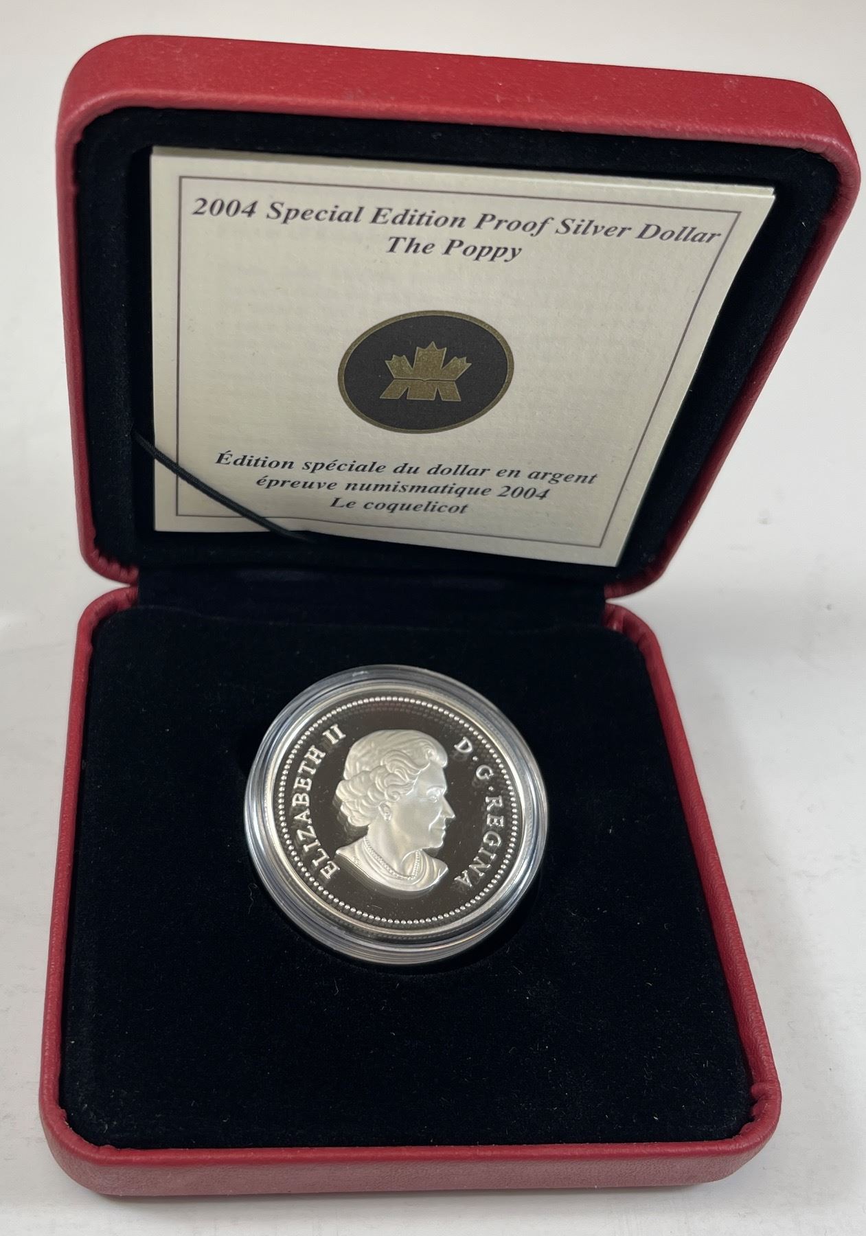 2004 Canada Special Edition The Poppy Proof Silver Dollar Coin (TAX Exempt) - 25.17 g - Mintage 25,000 With Box, and COA