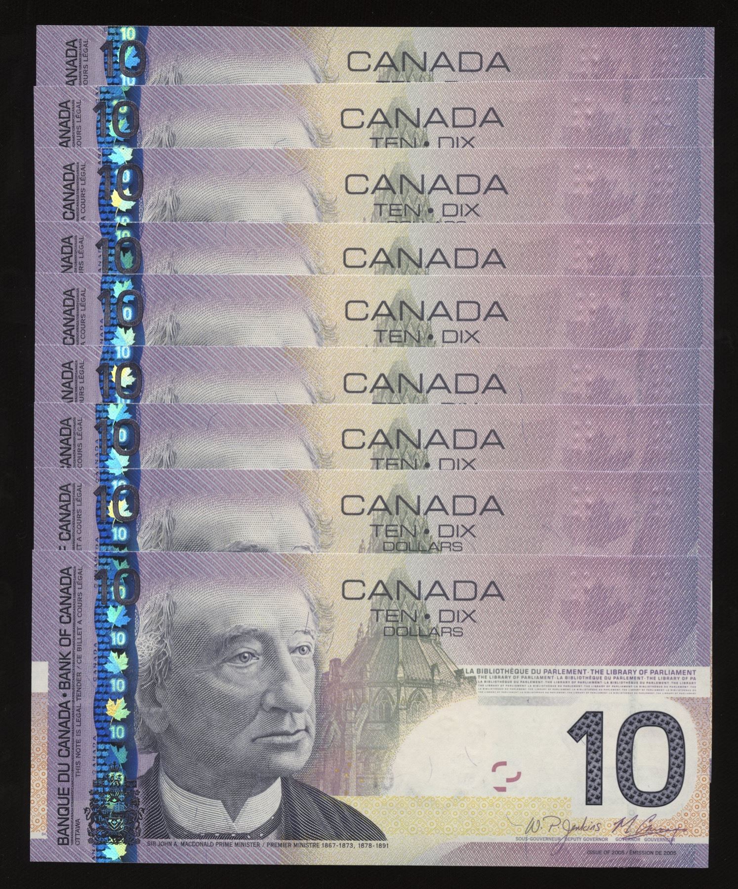 BC-68b. Printed in 2008. Gem Uncirculated. S/N:BFC9999900, 9999911, 9999922, 9999933, 9999944, 9999955, 9999966, 9999977, 9999988. 9 Notes.