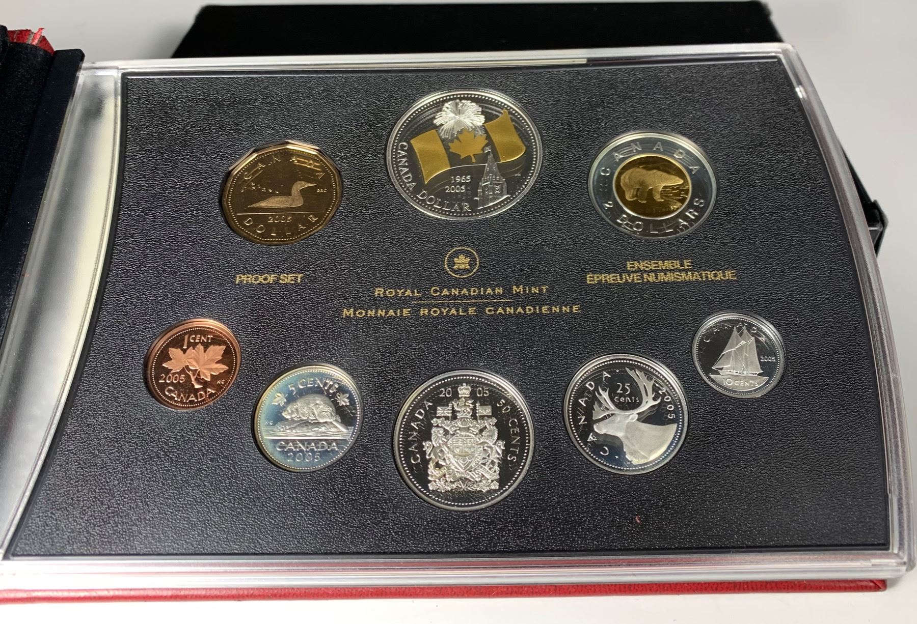 2005 Canada Proof Double Dollar Set with Gilded Silver Dollar Commemorating the 40th Anniversary of Canada's National Flag.