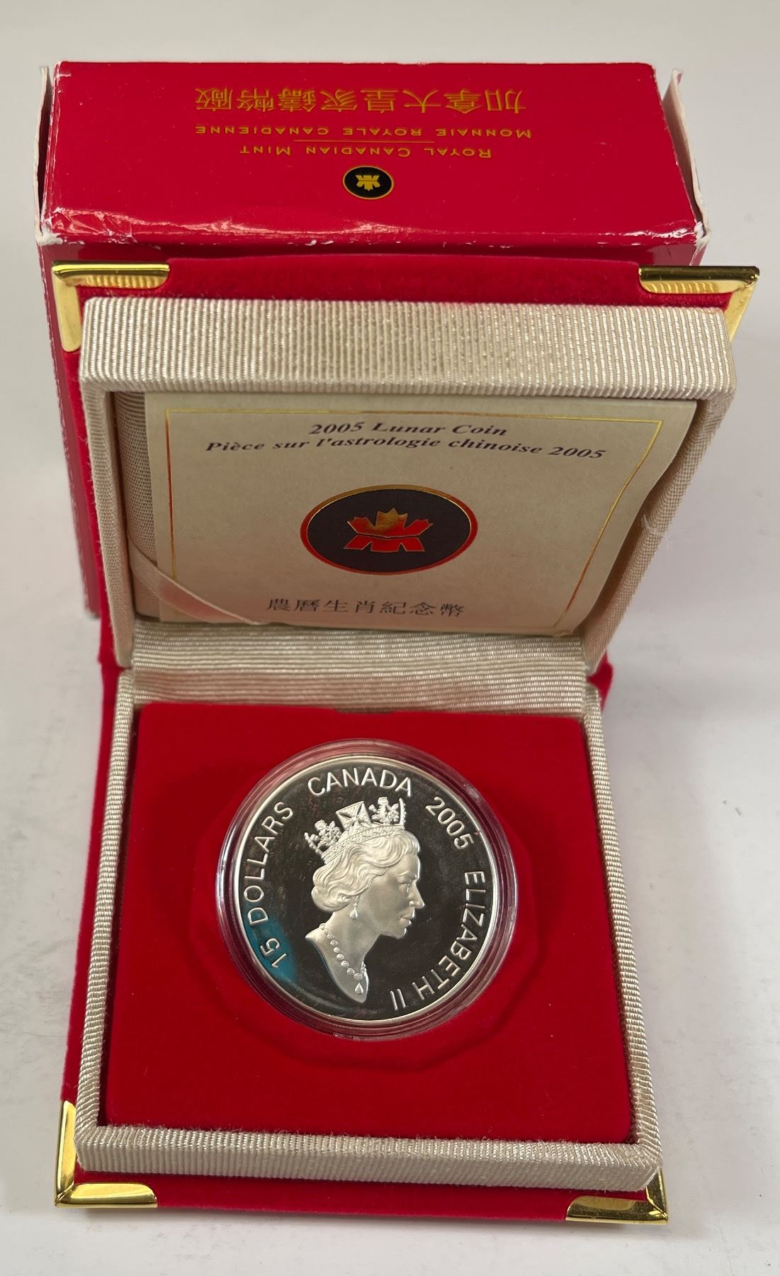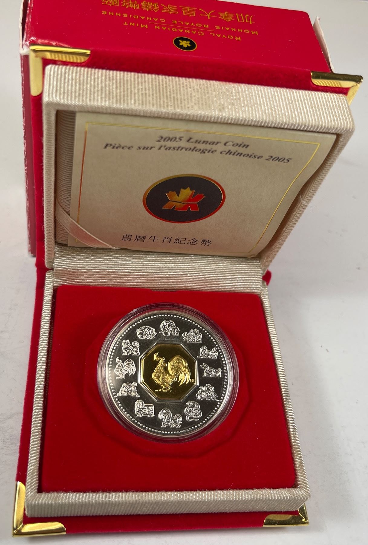 2005 Canada $15 Year of the Rooster Sterling Silver & Gold Plated Cameo - 34.00 g - Mintage 44,691 With Box, sleeve and COA