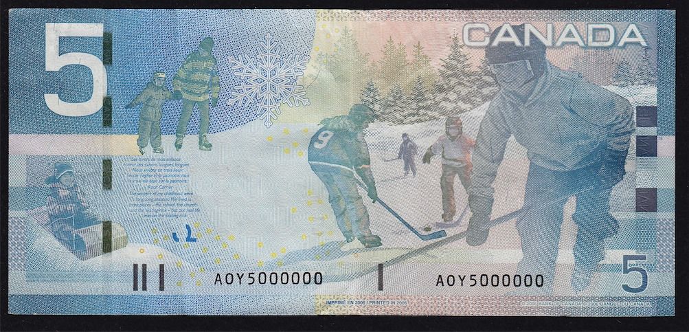 2006 Bank of Canada $5 Million number - VF. S/N:AOY5000000.