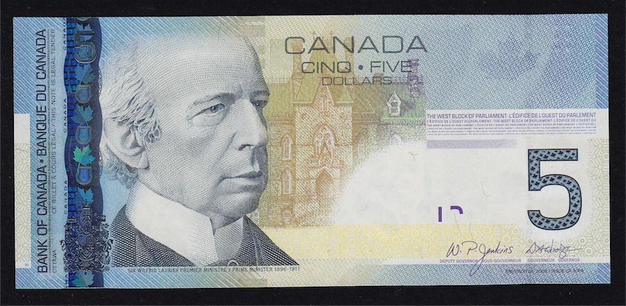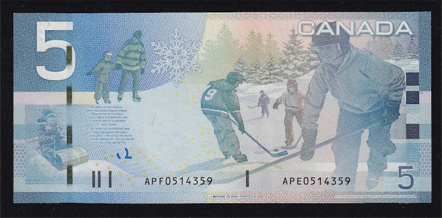 2006 Bank of Canada $5 Mismatched Prefix Letters. CH E14-i, UNC, S/N:APF0514359-APE0514359.