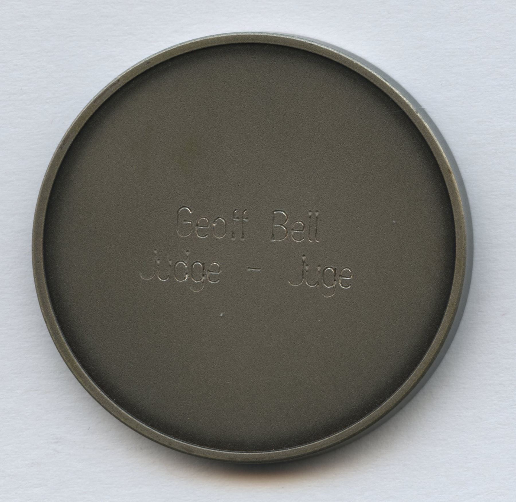 Presented to Geoff Bell. Produced in Copper/Nickel.