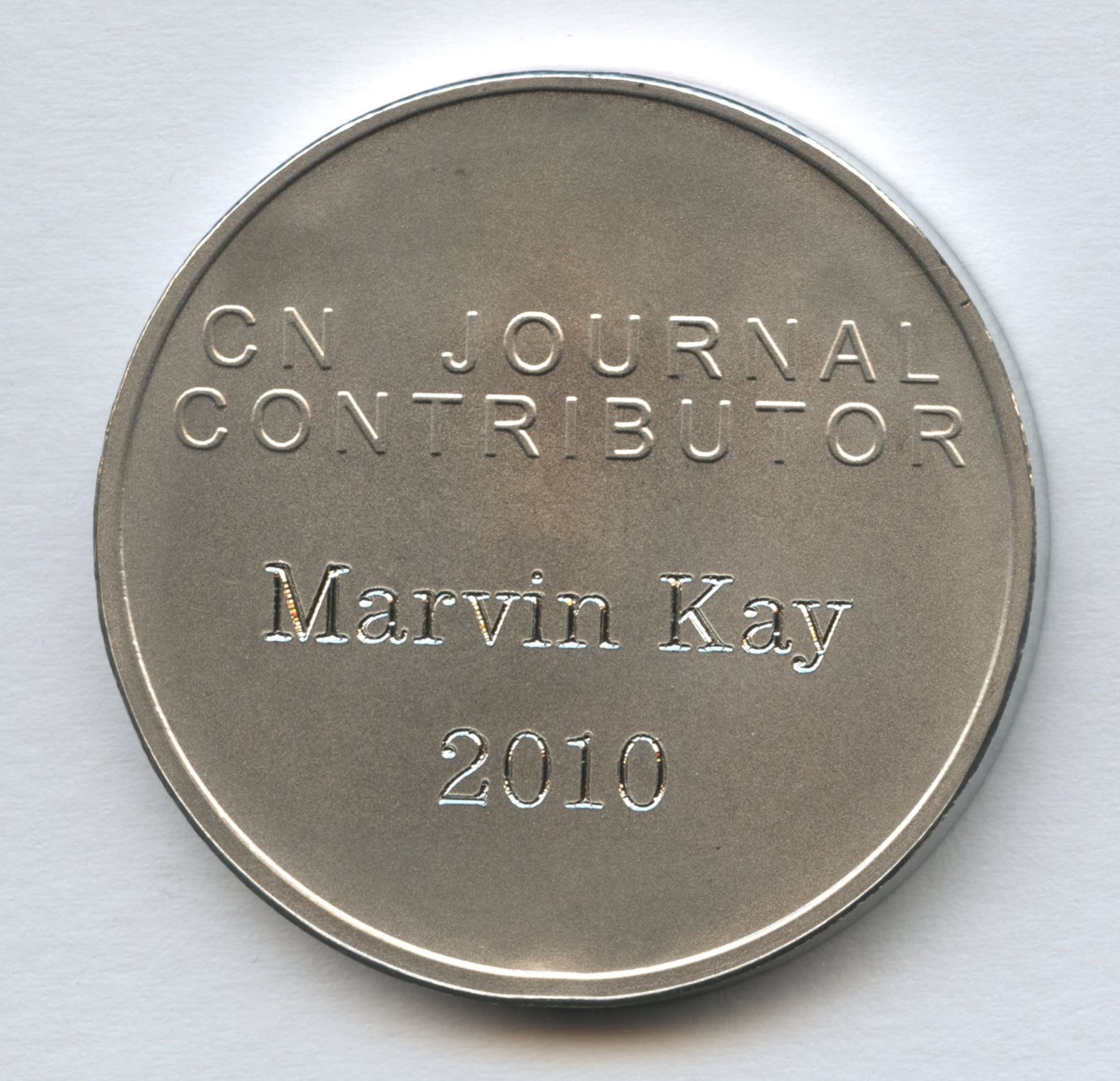 Awarded to Marvin Kay. Produced in tin.