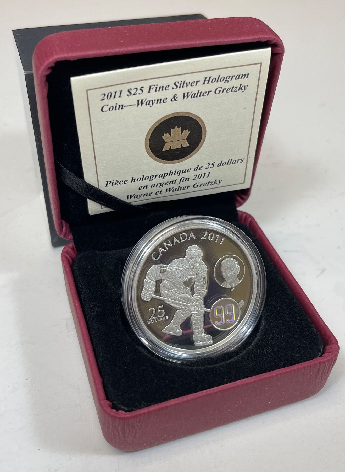 2011 Canada $25 Wayne & Walter Gretzky Fine Silver Hologram (No Tax) - 31.39 g - Mintage: 19,999 - With Box, sleeve and COA