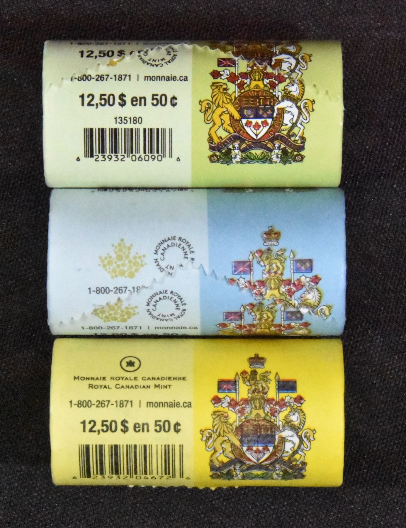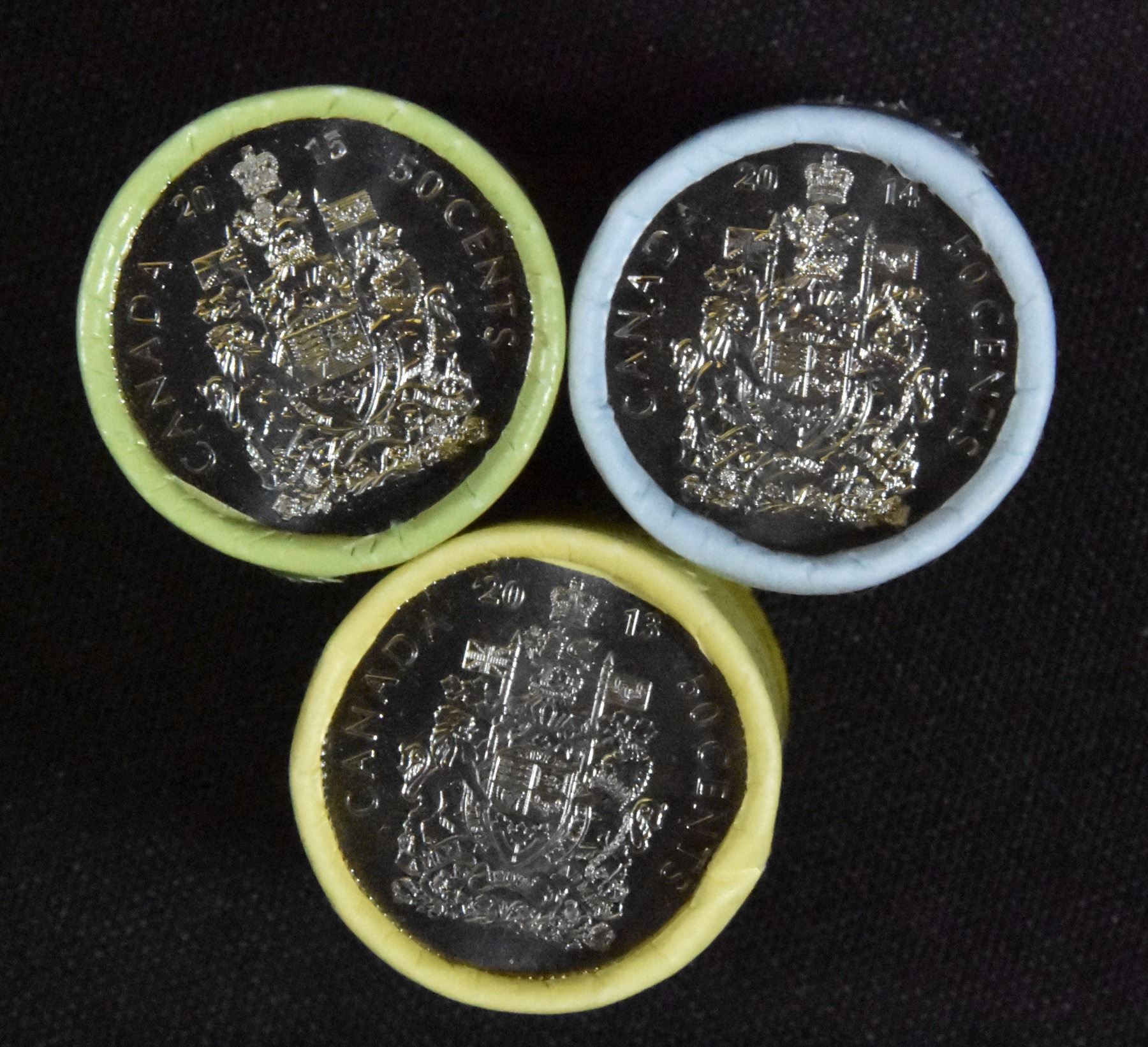 2013, 2014 & 2015 Canada 50-cent Original Rolls. 3 Rolls.